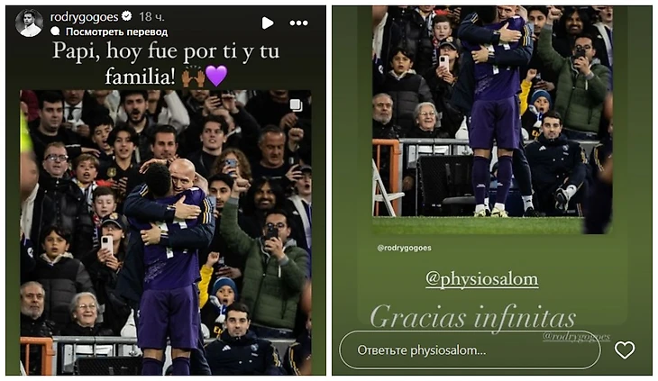 После игры Родриго опубликовал в своем инстаграме пост со следующим текстом: «Папа, сегодняшний день был посвящен тебе и твоей семье!» На что Салом сделал репост и прикрепил короткий ответ «бесконечное спасибо».