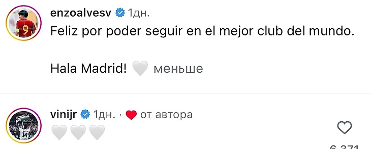 О продлении сына в «Реале», конечно, высказался и Марсело: «Поздравляю сына с достижением еще одной цели! Счастье, работа и ответственность 💜. Блистай, малыш! Вперед! Вперед!»
