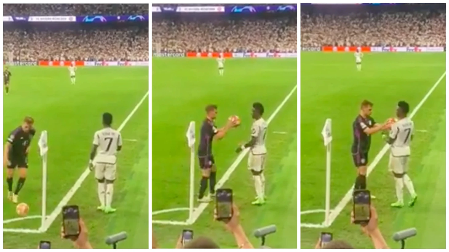 Киммих поднял мяч и прислонил его к груди Винисиуса.