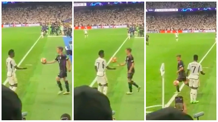В ответном матче с «Баварией» Винисиус тянул время во время аута. Йозуа Киммих подал мяч игроку «Реала», но бразилец пропустил его. А затем посмотрел на немца, вероятно, не дождавшись, что оппонент положит ему мяч в руку.
