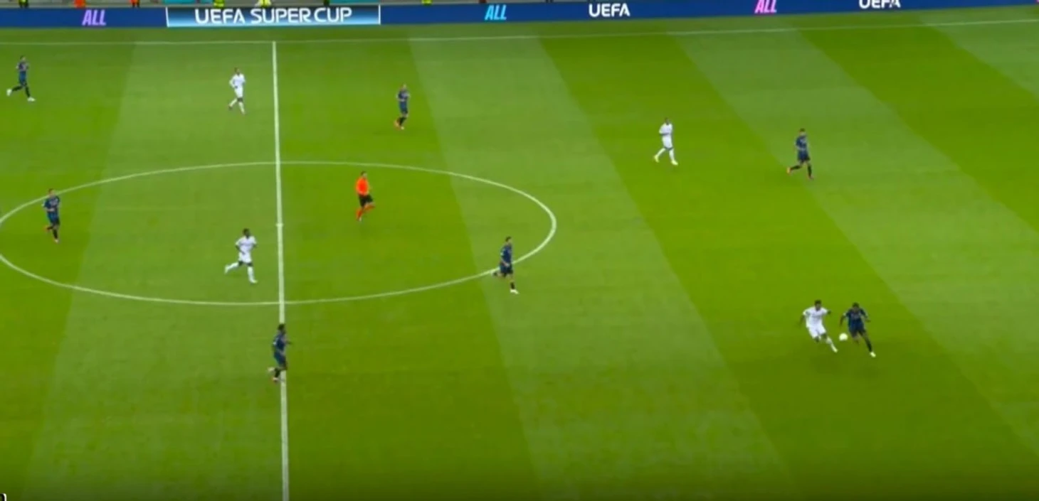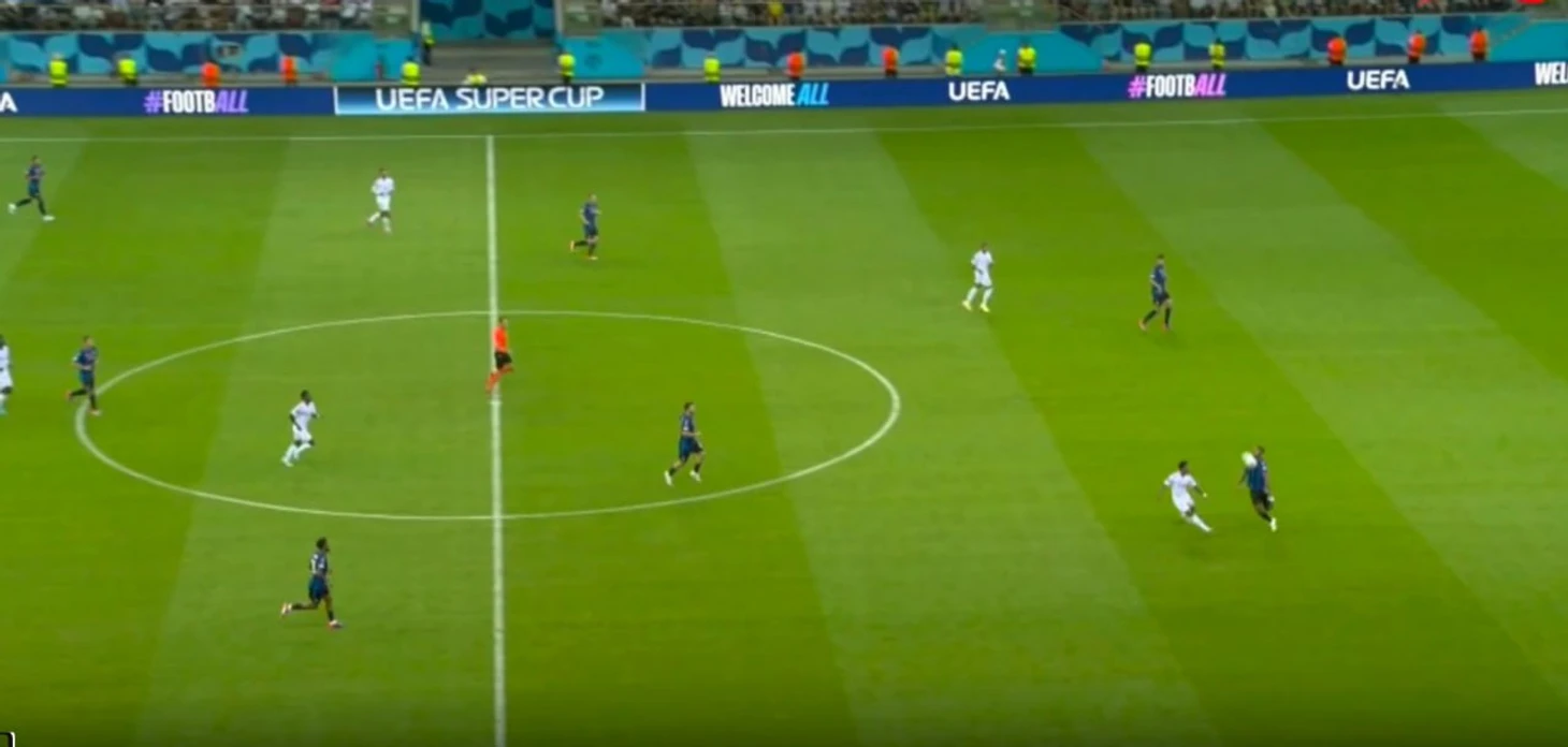 В последовавшей контратаке «Реала» поучаствовала вся атакующая четверка: Родриго, Винисиус, Беллингем и Мбаппе.
