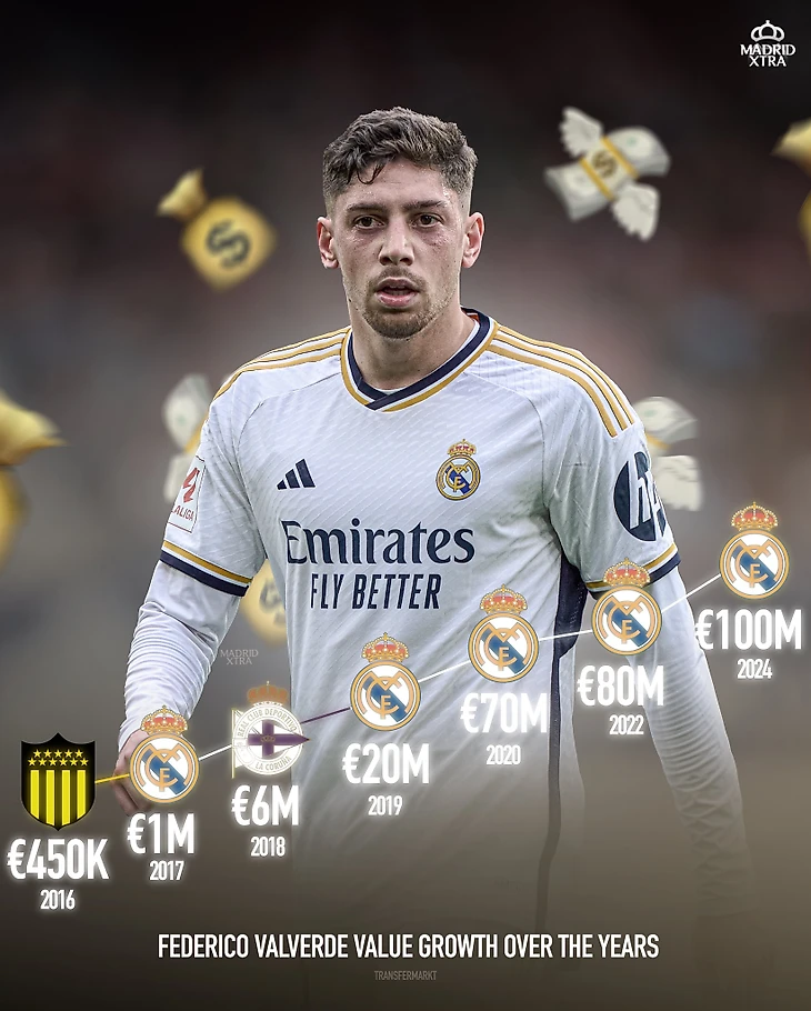 С тех пор Вальверде прибавил в цене в 20 раз. И это минимум. Трансферная стоимость Федерико оценивается в €100-120 млн.