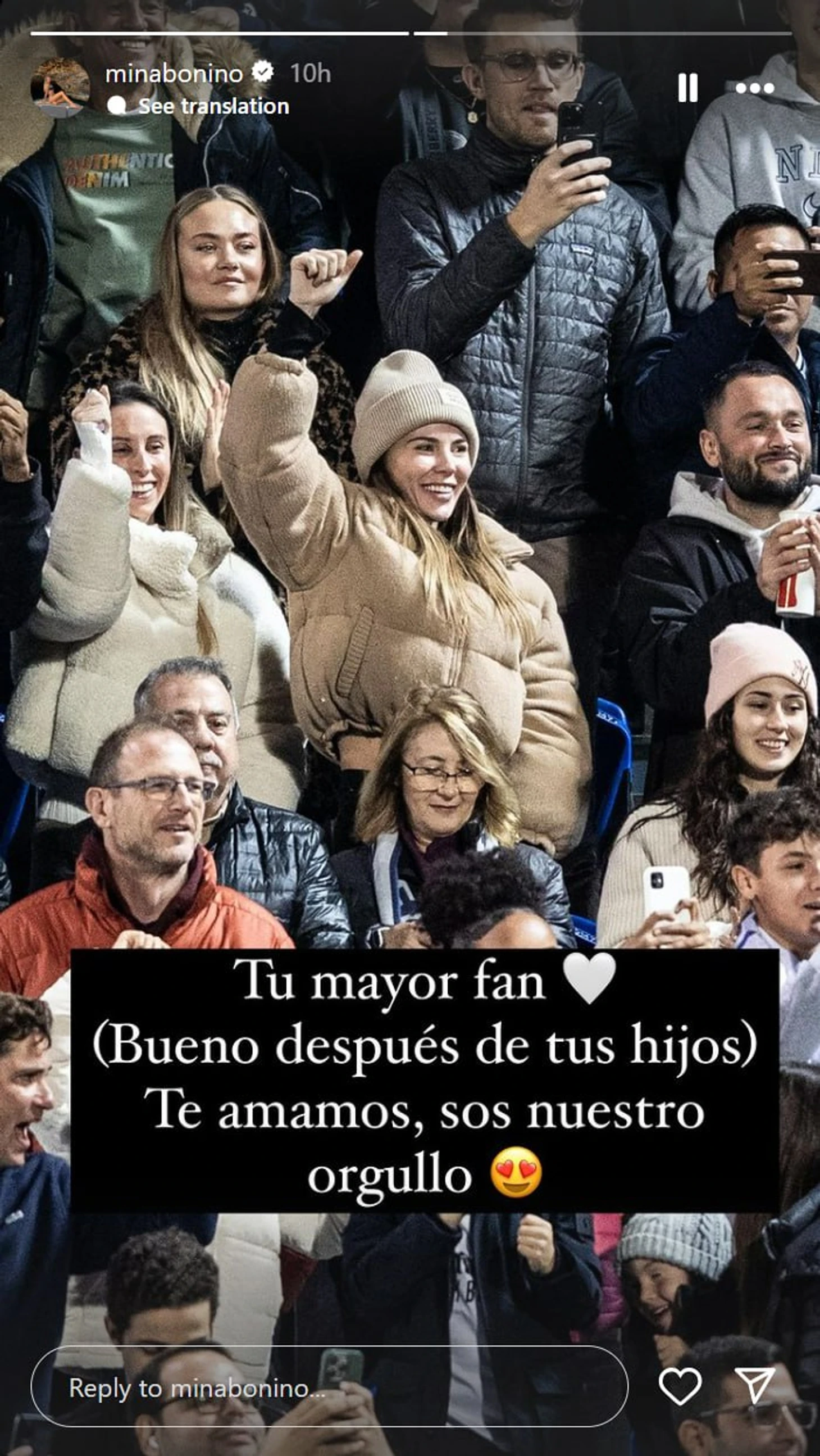 Мина Бонино поделилась постом в социальных сетях: «Я — твой главный фанат! (Хорошо, после наших сыновей). Мы любим тебя, ты — наша гордость».
