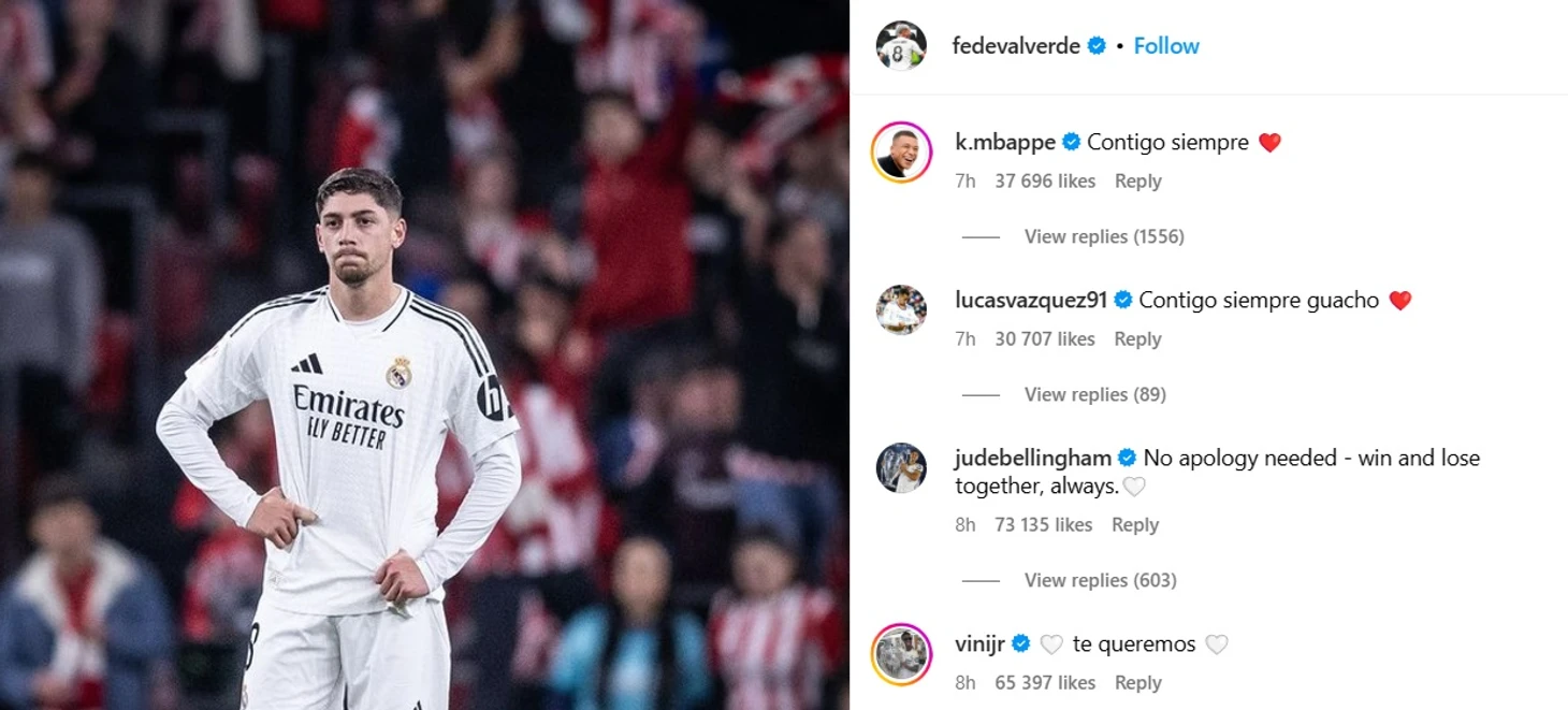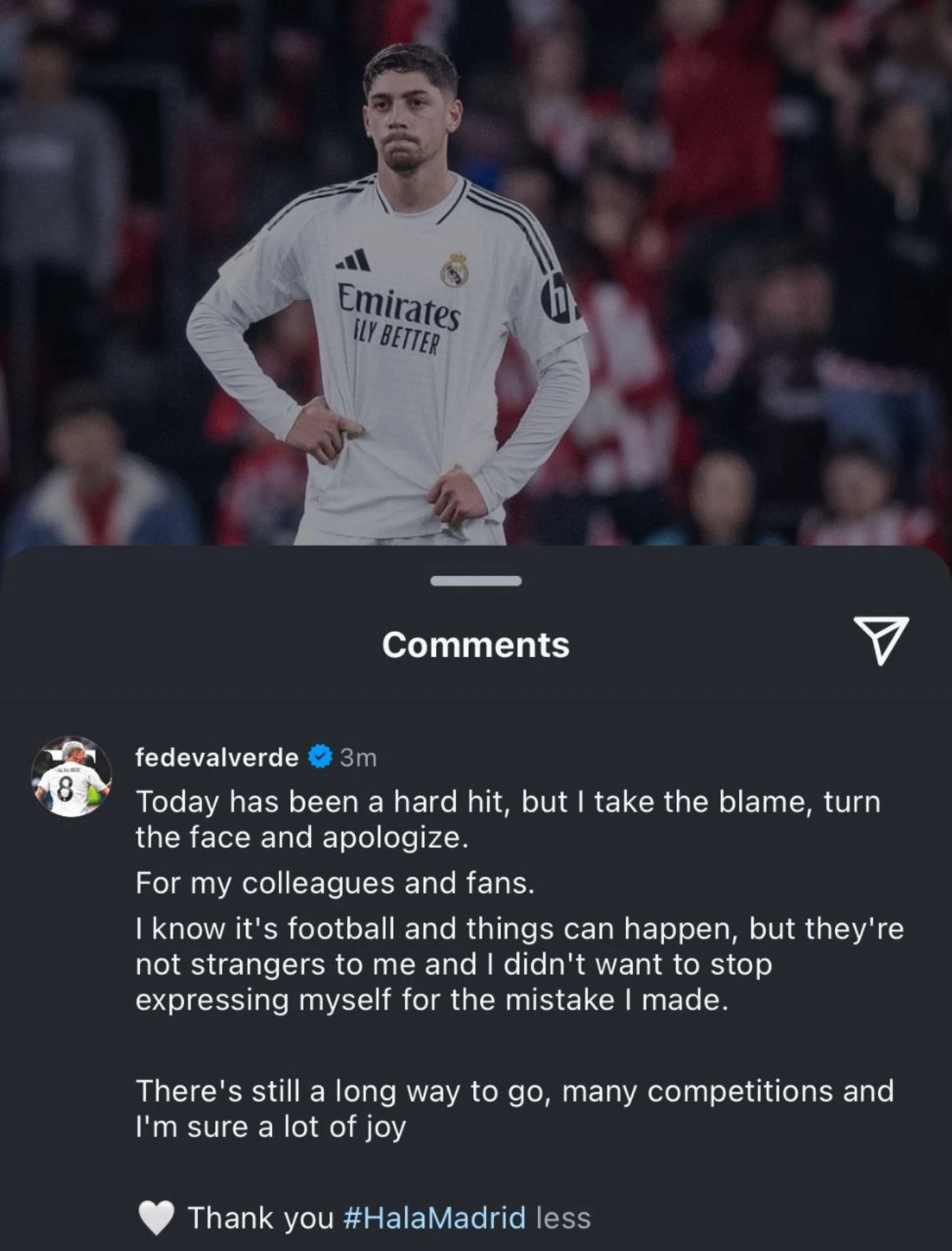 «Я признаю свою вину и прошу прощения». Вальверде извинился перед фанатами и одноклубниками после матча с «Атлетиком»