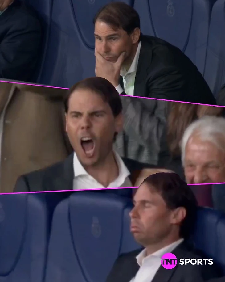 Надаль очень переживал за любимую команду и даже не думал скрывать эмоции, вместе с другими фанатами на «Бернабеу» он очень переживал за «сливочных».