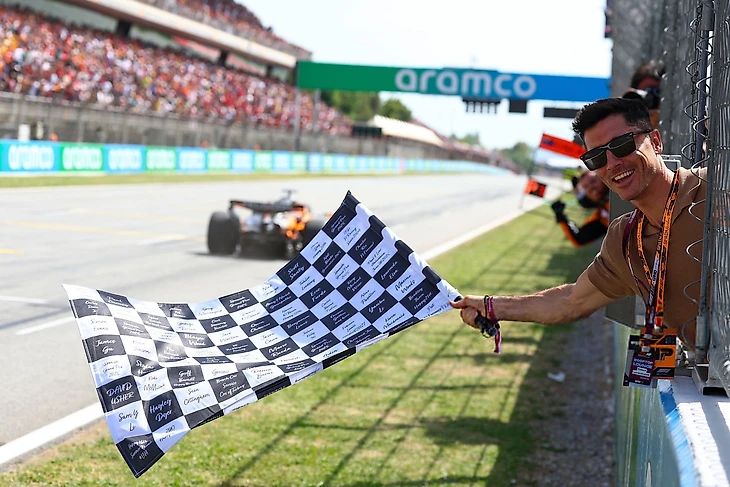 В кадр попали Харри Кейн, Букайо Сака, Джордан Пикфорд и Трент Александер-Арнолд. Кроме этого в боксах «Ред Булл» заметили Роберта Левандовского и он же махал финишным клетчатым флагом.
