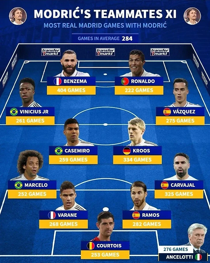 Лука Модрич покидает «Реал» после эпохи длиной в 13 лет, став самым титулованным игроком в истории клуба. За это время он успел поиграть бок о бок с целой плеядой легенд. Вот 11 футболистов, с которыми хорват провел на поле больше всего матчей: