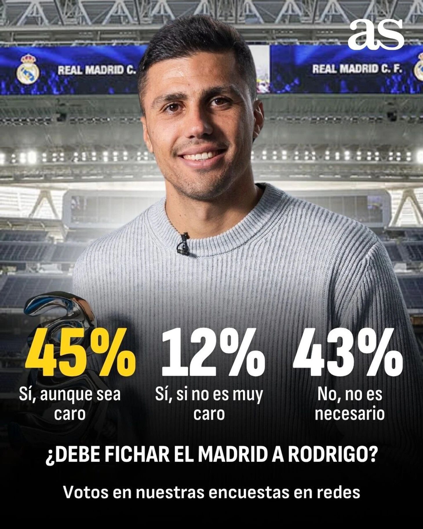А что думают болельщики «королевского клуба»? Журналисты As провели опрос среди поклонников «Мадрида», у респондентов спросили, должен ли «Реал» подписать Родри. Мнения болельщиков разделились.