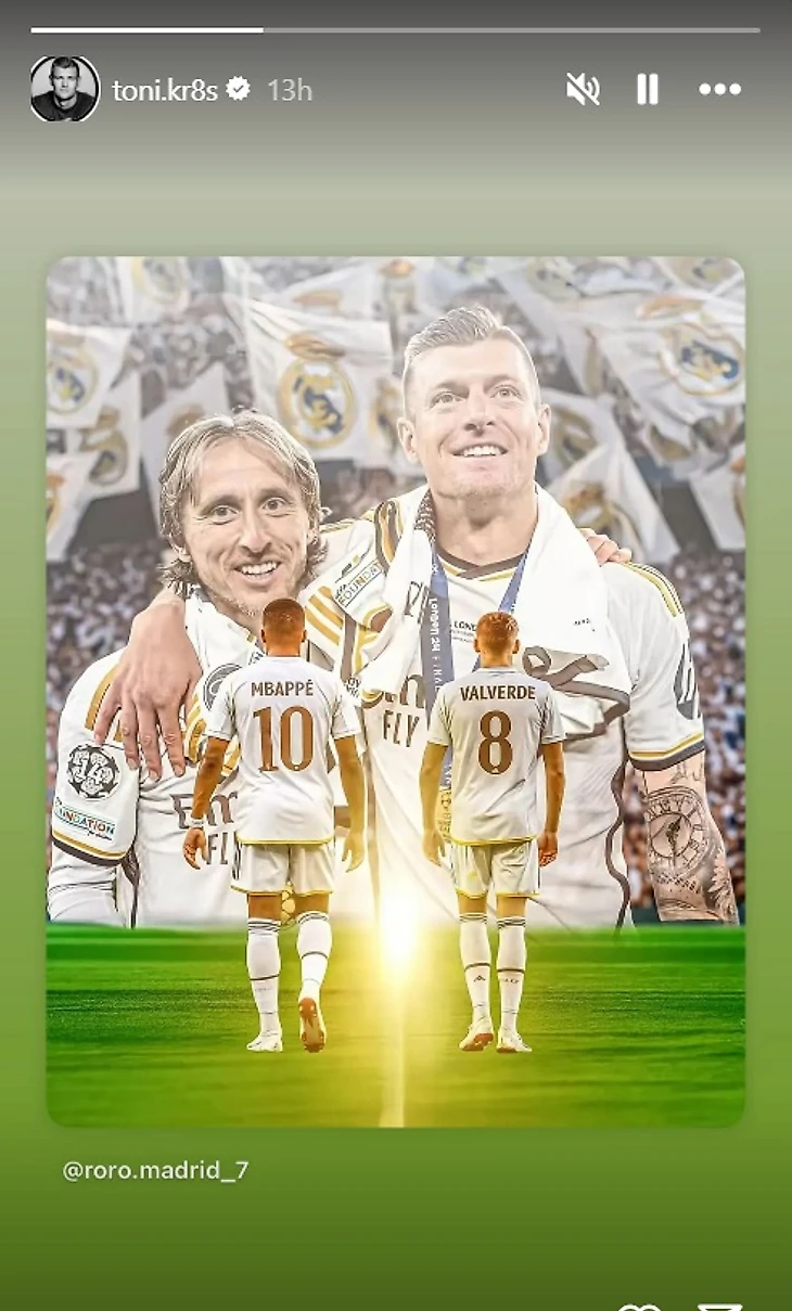 Тони поделился изображением в Instagram, судя по которому он рад, что именно Мбаппе и Вальверде продолжат его с Модричем путь.