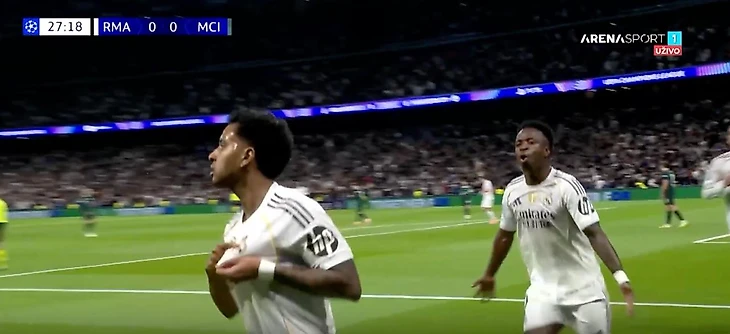 Родриго наконец прервал безголевую серию, длившуюся 32 долгих матча. Гоэс на 26-й минуте открыл счет в игре с «Ман Сити» и красиво отпраздновал взятие ворот – указал на эмблему «Мадрида».