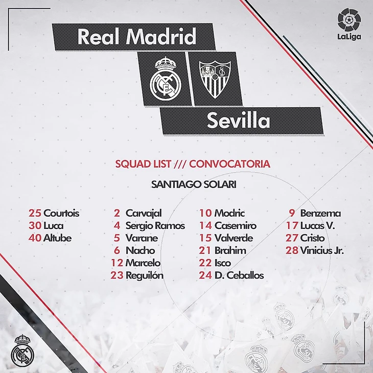 Кейлор Навас получил травму, Кико Касилью вчера мы продали в Англию, так что в заявке Люка Зидан! Как и не до конца восстановившийся Куртуа