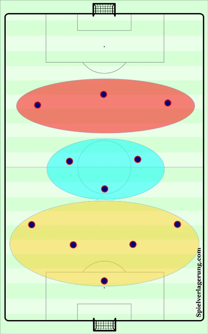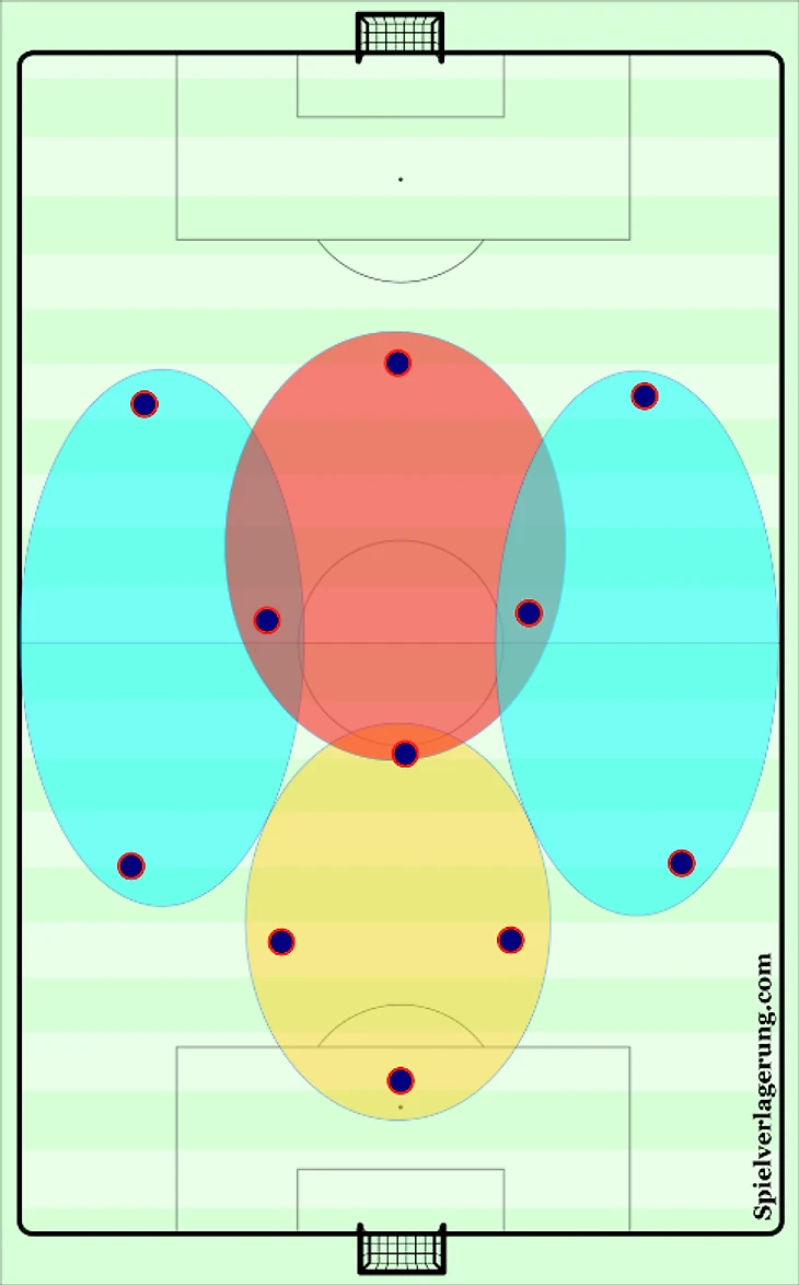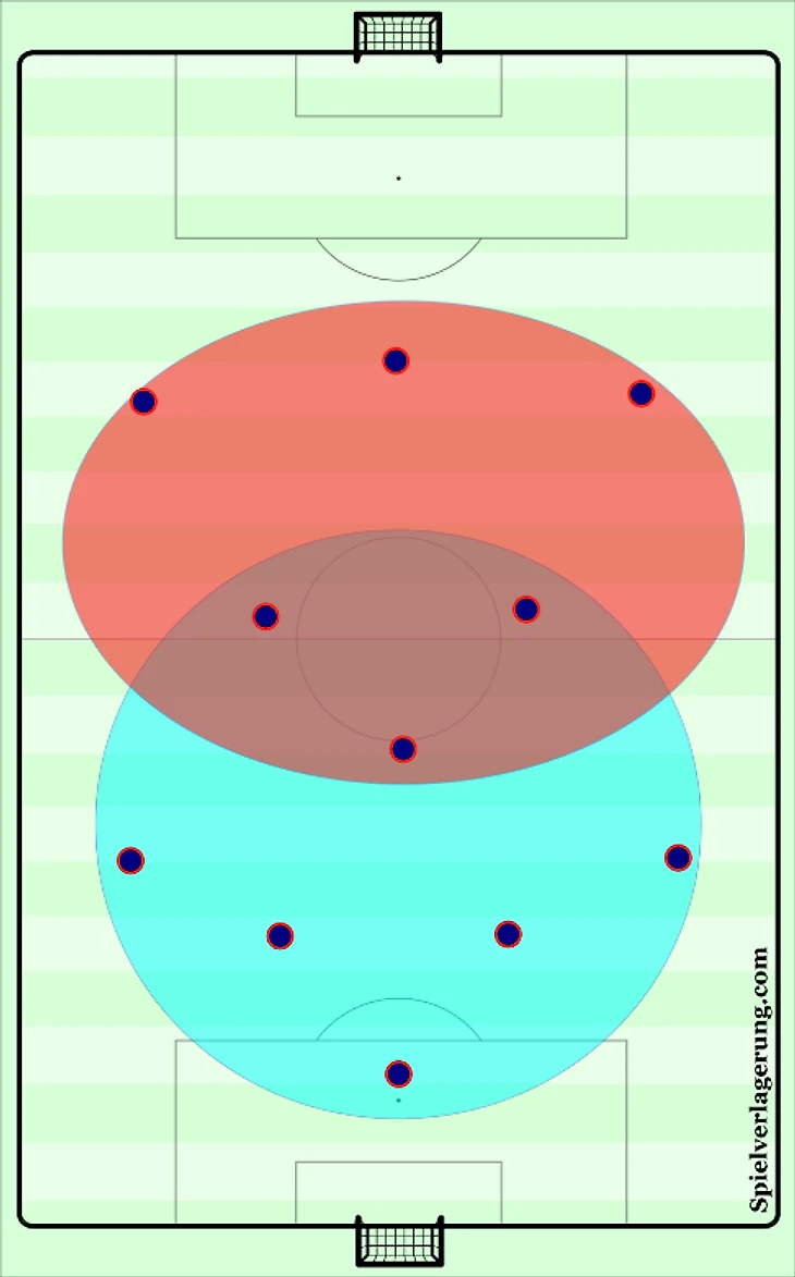 Если продолжить рассуждение о команде, предпочитающей играть во владение, то подпринципом может быть смещение опорного полузащитника между центральными защитниками с выдвижением крайних и созданием ширины атаки. Это в случае если соперник обороняется слишком глубоко или наоборот оказывает слишком большое давление на вашу оборону. Если же соперник играет средним блоком, то опорник может открываться между линиями и быть дополнительной опцией для розыгрыша мяча.