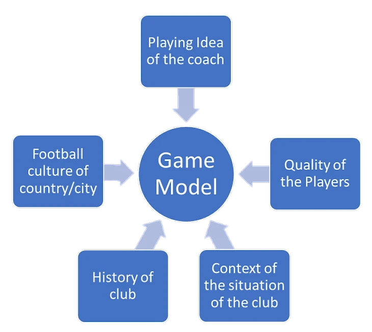 Модель игры – это уровень организации, которого добивается команда. Она является следствием заранее определенного поведения, спланированного и натренированного для каждого момента игры и в различных ситуациях на поле. Это создает больше порядка и определенности, благодаря которому команда может попытаться повлиять на исход игры. Последовательность и частота, с которой желаемое поведение встречается от игры к игре, определяют лицо команды. Модель игры никогда не является готовым продуктом, это бесконечный процесс, постоянно улучшающийся и развивающийся с помощью анализа игры и команды.