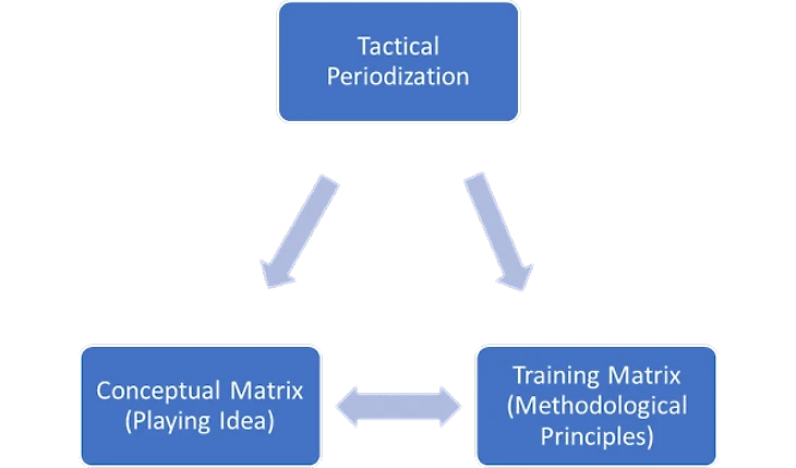 Тактическая периодизация состоит из концептуальной матрицы (игровая модель) и обучающей матрицы (методологические принципы). Матрицы должны постоянно пересекаться, чтобы тренировочный процесс соответствовал тому, как команда собирается играть.