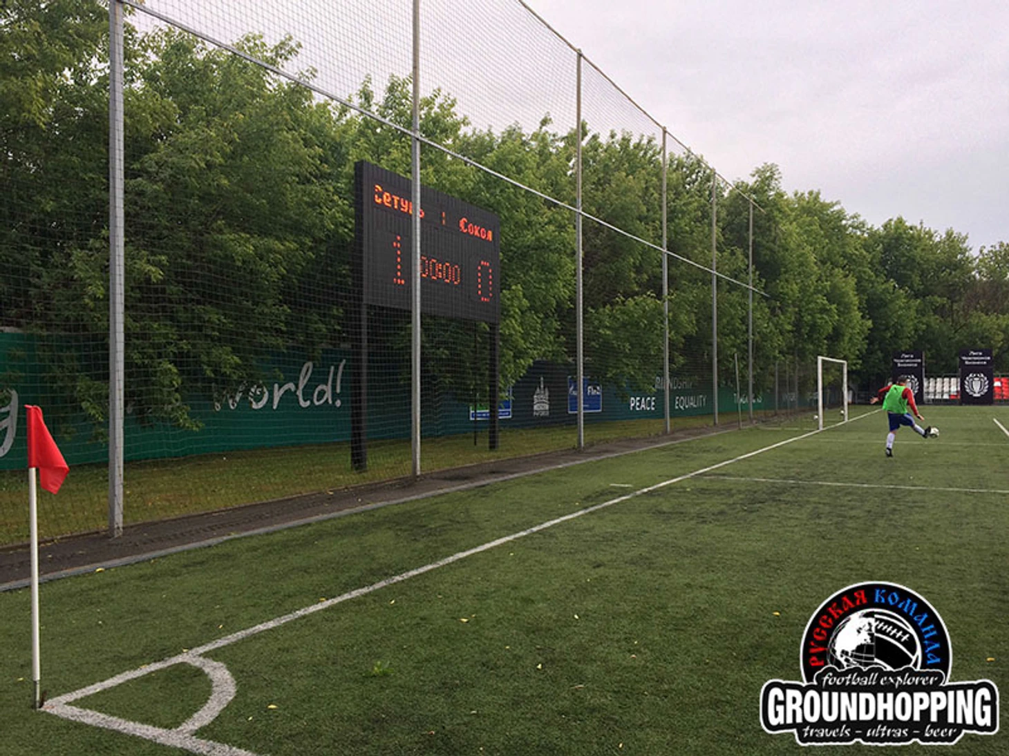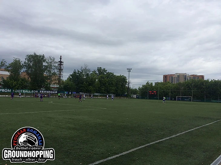 Вторая часть моих увлекательных похождений на футбол с немцем граундхоппером. Через день после неудачной вылазки в Железнодорожный, мы решили посетить что-нибудь уже в черте города, да так, чтобы успеть на вечерний футбол в Черкизово, где на «Сапсан-Арене» встречались сборная России со сборной Англии. Вывеска огонь, правда, сборные женские, но мы сейчас не об этом. Как нельзя лучше подвернулся футбол в Сокольниках. Честно признаться не знаю, каким местом я изначально рассматривал вывешенное на сайте Московской федерации футбола расписание, но почти до самого начала матча думал, что игра будет на «Спартаковце», поэтому мы договорились встретиться в центре зала метро «Преображенская площадь». Уже на пути туда мне стукнуло в голову, что я перепутал стадионы и удобнее добираться с «соколей». Местные знают, что это соседствующие станции, если ехать из центра – Сокольники и вовсе ближе. Однако у Филиппа, как уже упоминалось в прошлом отчете ни русской симки, ни соцсетей с интернетом, в общем, пришлось ехать, как и договорились на «преображенку». Небольшое опоздание пошло даже на пользу, ибо мой напарник опоздал еще больше чем я, но это мелочи. Молниесносное совещание, решаем идти пешком до нужного места, сказано-сделано, телепортируемся на улицу из подземки, проходим метров 100 и естественно начинается ливень стеной, такой, что зонт можно не раскладывать даже, да его и не было. «Вжух!» *кадр с замиранием* возвращаемся на несколько предложений выше и освежаем в памяти, что я перепутал метро. Для справки от Сокольников до академии ходят комфортабельные, а главное с крышей рейсовые трамваи. *кадр отмирает*. Переждав основной заряд дождя, наш дуэт в темпе шага явно выше среднего отправился к нужному футбольному полю, чтобы успеть к стартовому свистку. Обмениваясь обоюдными историями о своих граундхоппинг- и не только похождениях (Фил является активным участником одной довольно известной ультрас-группы в Германии) мы оказались около первого по нумерации, но не первого по задействованности газона академии.