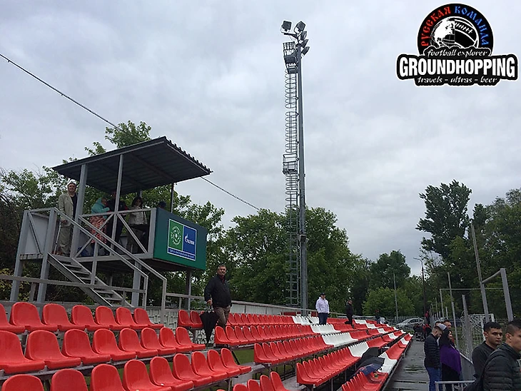 Наступил перерыв между таймами. Если команды за это время остужали свой пыл и прислушивались к советам тренеров, как действовать во второй половине встречи, нам остужать было нечего, на улице хоть и июнь – из-за дождя с ветром было довольно зябко. Признаться на самом стадионе, кхм, поле смотреть было особо не на что. Но, чтобы дальше не прозябать было решено сделать круг почета, вдруг, что интересное встретится, да и пофотографировать с других ракурсов трибунку и табло сам футбольный Бог велел.