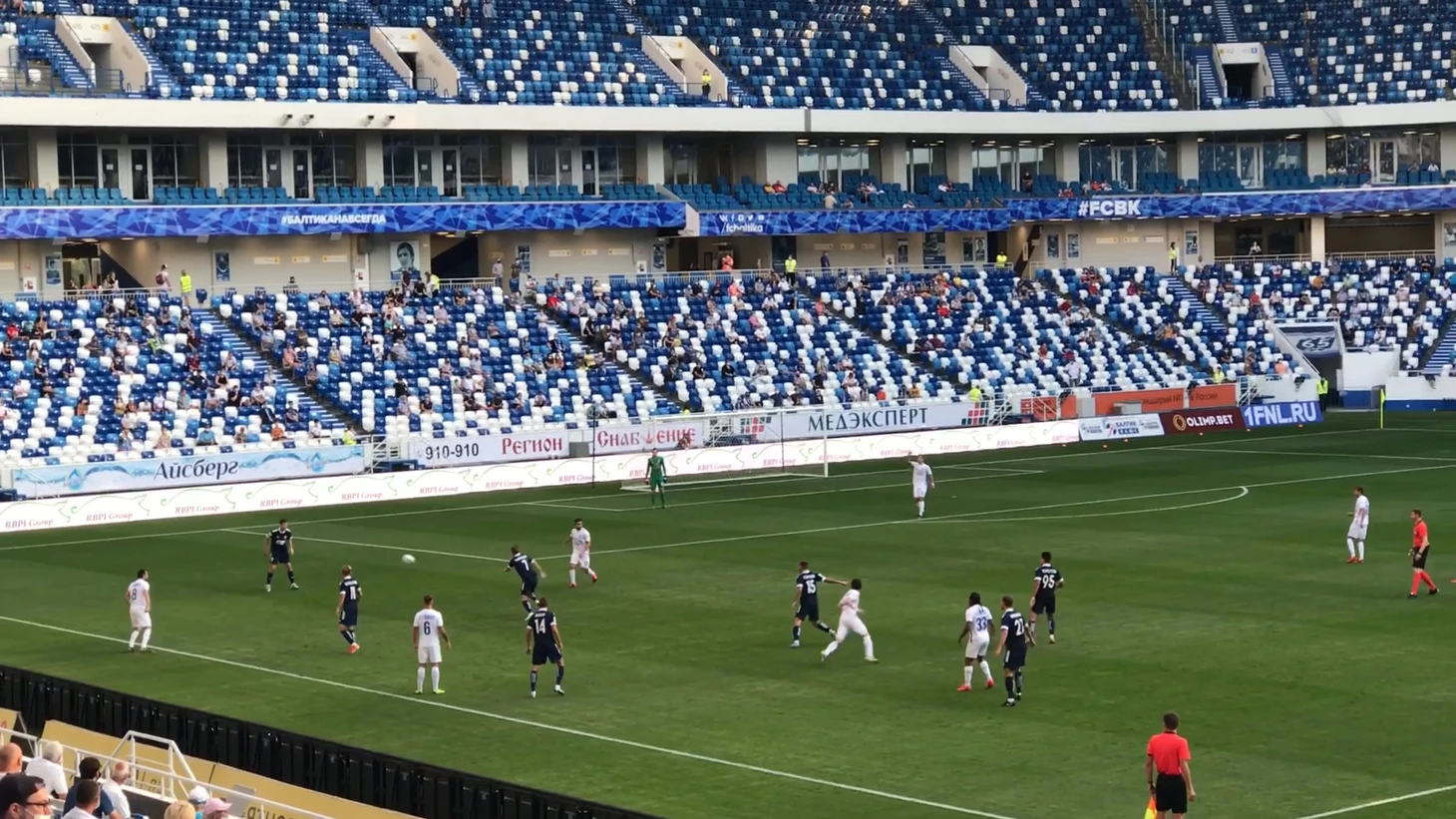 На стадион я приехал за час до матча и короновирусные реалии меня серьезно поразили. К атмосфере пустующего стадиона можно было добавить "перекати-поле" для полноты картины. Ничто не говорило о том, что через несколько десятков минут "Балтика" проведет свой первый домашний матч в сезоне против "Волгаря" из Астрахани.