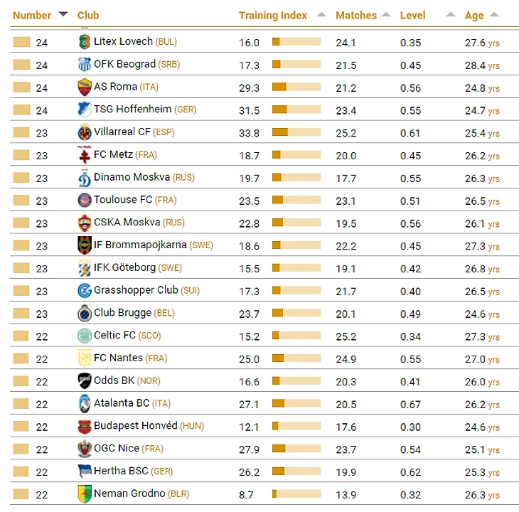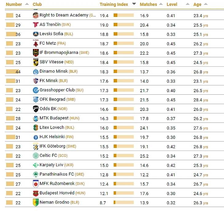 Если говорить о соотношении количества и качества, то с негативной стороны показывают себя академии львовских "Карпат", "Селтика", "Панатинаикоса" и "Витесса". Далеко не самые слабые команды, между прочим. Отдельного упоминания стоит "Динамо Минск", где выпускается очень много профессиональных игроков (44), но почти все они играют на низком уровне.