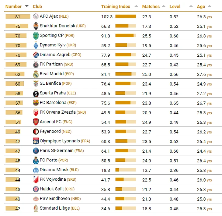 Однако, больше - ещё не значит, что лучше. Именно поэтому CIES дополнительно рассчитал "тренировочный индекс" - показатель, который оценивает силу команд и турниров, в которых они выступают, а также игровое время футболистов. С учётом этих поправок общая картина выглядит несколько иначе. "Барселона" и "Реал" поднялись выше, а украинские команды уступили несколько строк в рейтинге, что закономерно, учитывая уровень Ла Лиги и УПЛ. В конце-концов, лучшие воспитанники собственных академий топ-клубов нередко остаются играть в первых командах, что и даёт им много очков в рейтинг. Стоит отметить, что кузницей талантов по-прежнему остаются балканские клубы вроде "Динамо Загреба", "Партизана" и "Црвеной Звезды".
