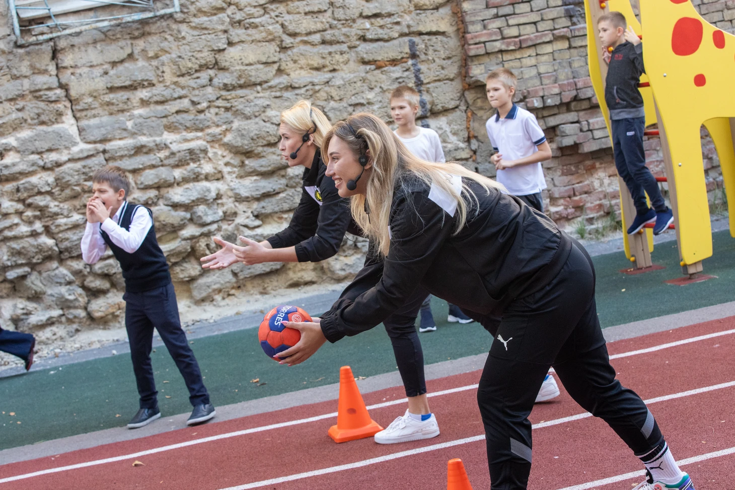 Спортсменки захватили внимание школьников сразу. Во время разминки Влада и Яся показывали «эксклюзивные» гандбольные упражнения и спрашивали у ребят, смогут ли они справиться с такими непростыми заданиями. В ответ хором: «Да!». После этого дети не отходили от наших девчонок ни на шаг.