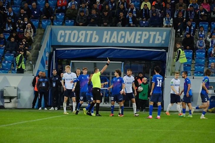 Алексей Стукалов произвел рокировку в перерыве, вместо "невидимого" Сухомлинова выпустил Сафронова. И второй тайм начался с самого, что не на есть, огнища. Герой концовки первой половины Кочканян, превратился в антигероя встречи. Прямой ногой подкатился под Кармаева, за что схлопотал второй "горчичник". И на этом не остановился. Начал выяснять отношения со всеми: с главным арбитром, с тем же Кармаевым, с резервным арбитром. И думаю, слова им сказанные, были, мягко говоря, нецензурными. Надеюсь, КДК разберется и влепит пару-тройку матчей дисквалификации. Абсолютно неспортивное поведение. И возможно, получил то вторую желтую не за фол, а больше за разговоры. Хотя и само нарушение было достаточно грубым. Оставим всё это совести автора, пока что, единственного мяча в этой встрече.