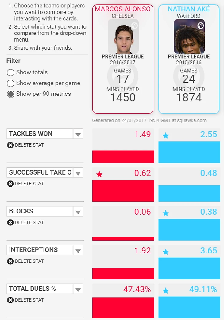 В этом сезоне Натан дебютировал в основном составе «Борнмута» только 19 ноября, но сразу ярко показал себя, используя скорость и атлетичность. Левоногому голландцу будет удобно играть левого центрального защитника, коим сейчас является Гари Кэйхилла. Он уверенно обращается с мячом, имея 88% успешных передач. Повторюсь, его физические способности позволяют ему играть бок о бок с Давидом Луизом, так как он легко может его подстраховывать. В этом сезоне у голландца 17 из 33 выигранных верховых единоборств, а из 3 мячей 2 забиты головой. Таким образом, при схеме 3-4-3 позиция левого центрбэка идеально подходит Аке, и он сможет закрепиться на ней на долгое время.