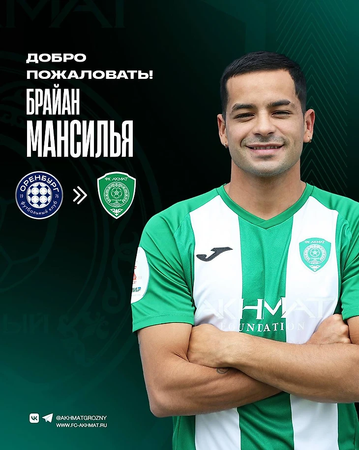 Брайан Мансилья являлся одним из лидеров Оренбурга и за весь сезон провёл 27 матчей и по системе гол+пас оформил 5+4, но при этом он получил 7 жк за сезон, что плохо сказывается о его дисциплине, к тому же он регулярно получает красные карточки. Вообщем это классный трансфер, который пойдёт на пользу клуба. Он и на поле играет хорошо и сам по себе футболист, который если надо может и сфолить. Такой футболист, точно нужен Ахмату.
