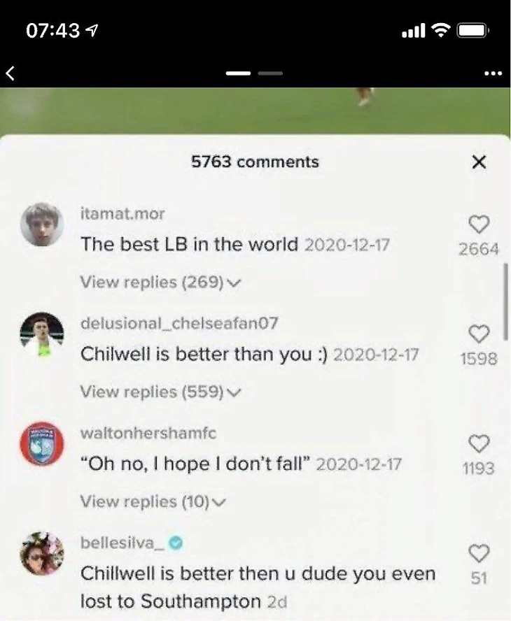В январе Робертсон выложил видео, куда спустя месяц в комменты заглянула жена Силвы (с галочкой) и заявила: «Чилуэлл лучше тебя, чувак, ты даже «Саутгемптону» проиграл».