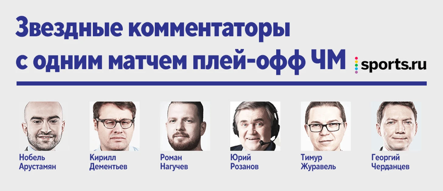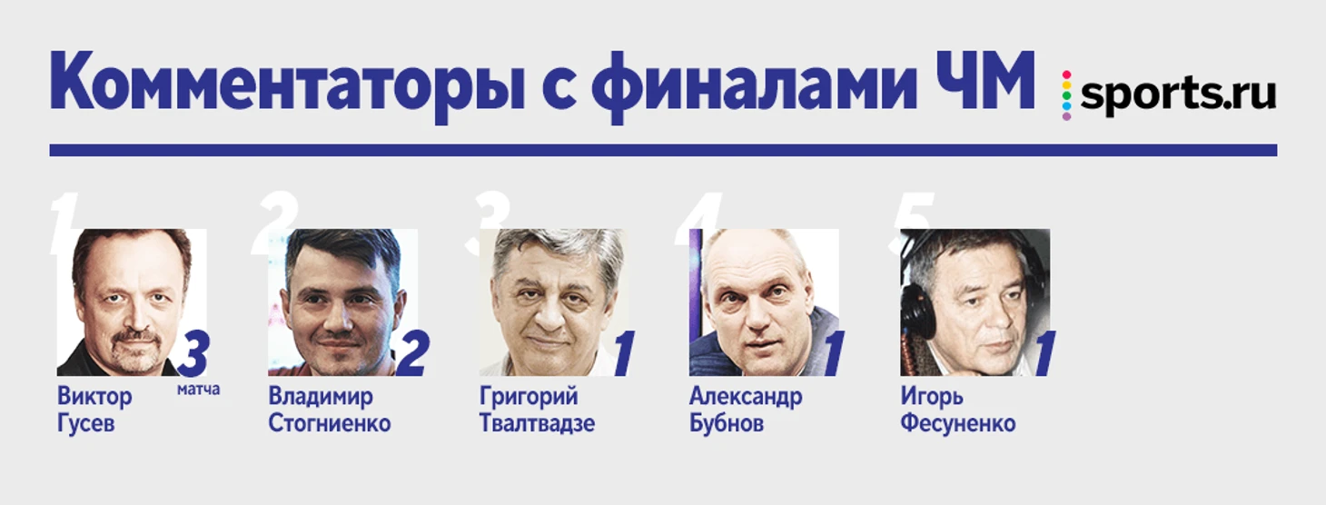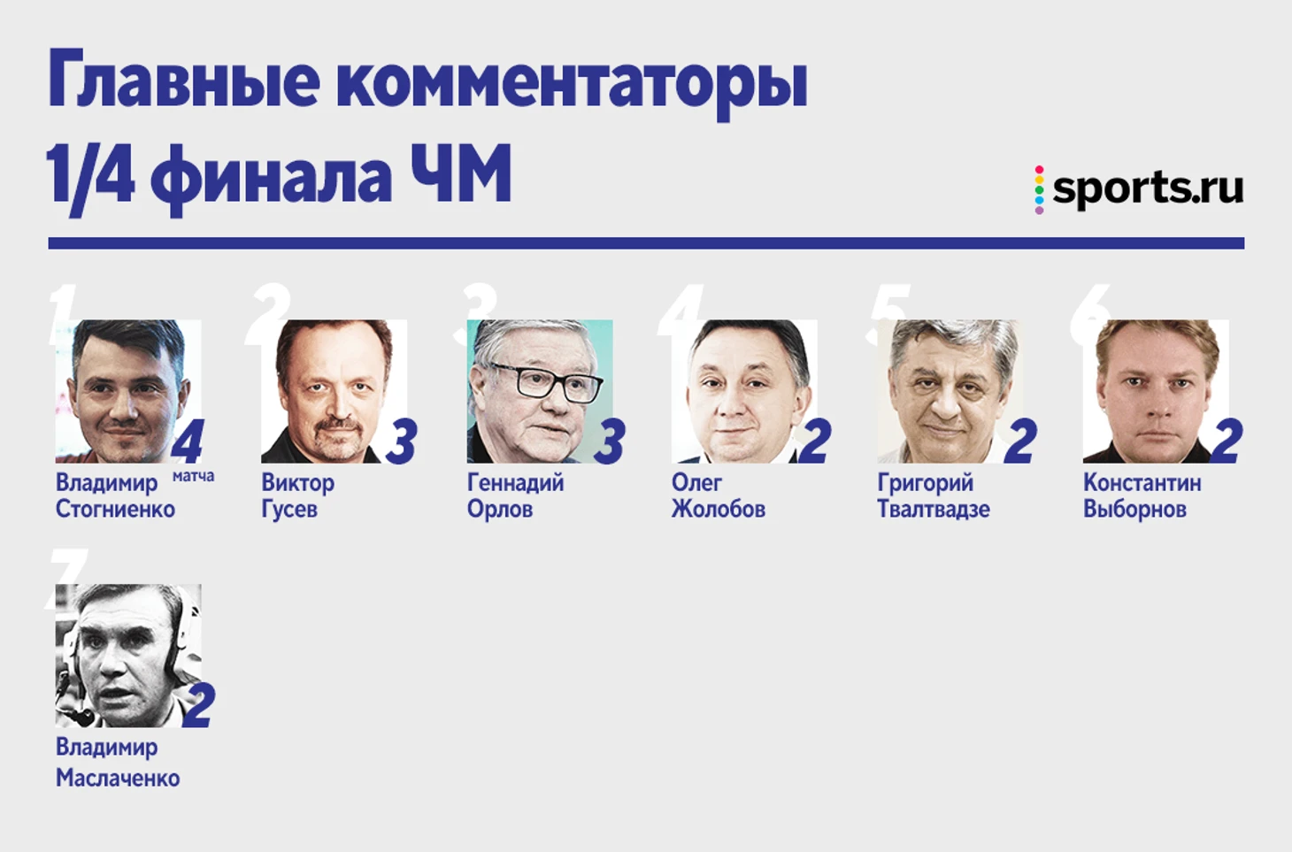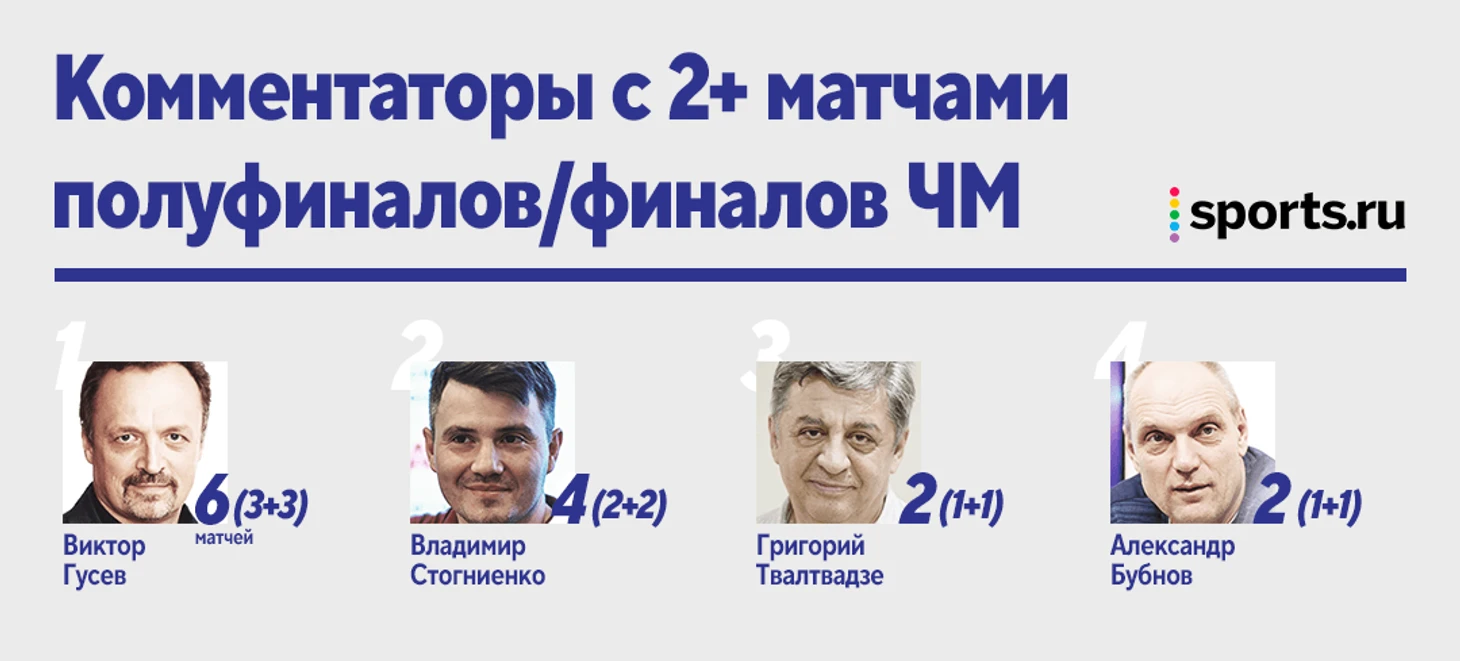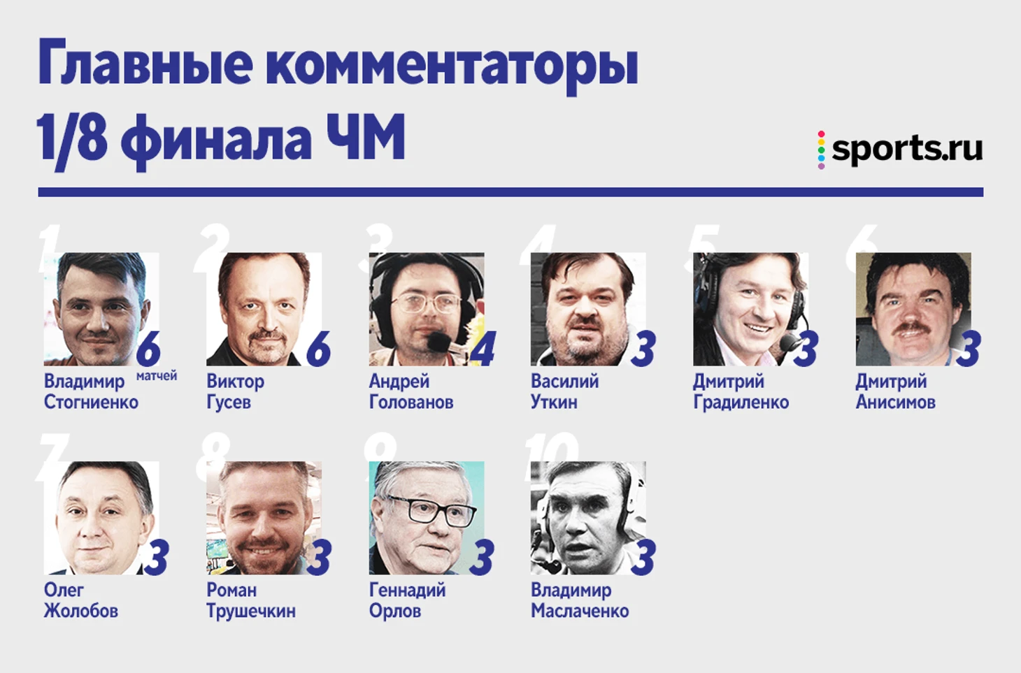 Какие комментаторы работали в плей-офф ЧМ? Гусев и Стогниенко недосягаемы, Бубнов в топе, у Черданцева один матч