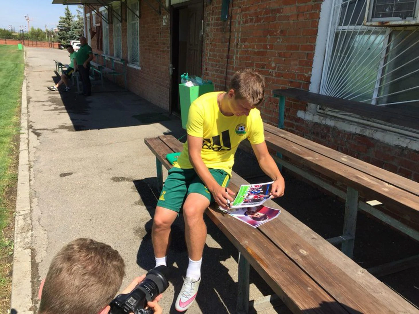 27 августа 2015 года, база футбольного клуба «Кубань», Краснодар. По-домашнему расслабленная атмосфера. Справа – натуральное поле, на котором близится к завершению тренировка основной команды клуба, слева – робеет маленький человек, который не может поверить в происходящее, а прямо напротив – удобно устроившись на деревянной скамейке сидит живой Андрей Аршавин и буднично расписывает открытки со своим изображением, которые проделали большой путь из маленького Заинска, чтобы оказаться в руках того, кто с самого начала и являлся нашим «пунктом назначения».