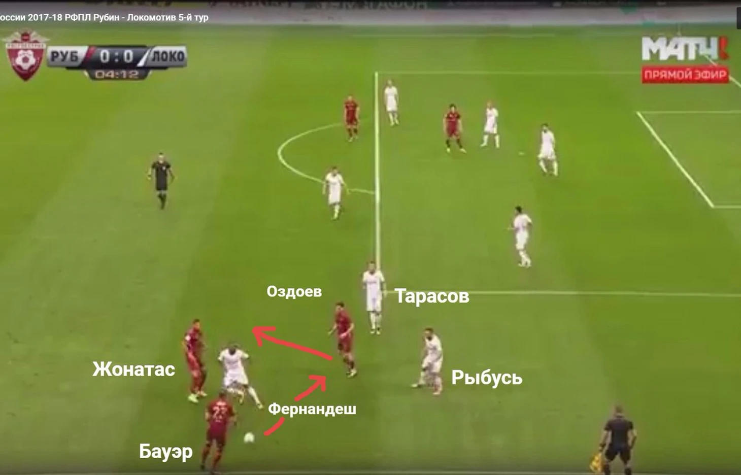 Однако в «Локомотиве» есть две проблемы: нет центрального нападающего и адаптированных к схеме крайних защитников. Если правый фланг закрыл набравший отличную форму Игнатьев, то без травмированного Виталия Денисова с левым флангом совсем беда. Пробовался Лысов, а затем и Рыбусь. Оба чувствовали себя неуверенно, не имели серьезного опыта игры в три защитника. Оба - игроки более атакующего плана по амплуа. На «Казань-Арене» Семин сделал выбор в пользу Рыбуся, его партнером по флангу стал Фернандеш, также не отличающийся оборонительными навыками. Левый фланг стал горячей точкой, и казанцы пользовались этим на протяжении всего матча.