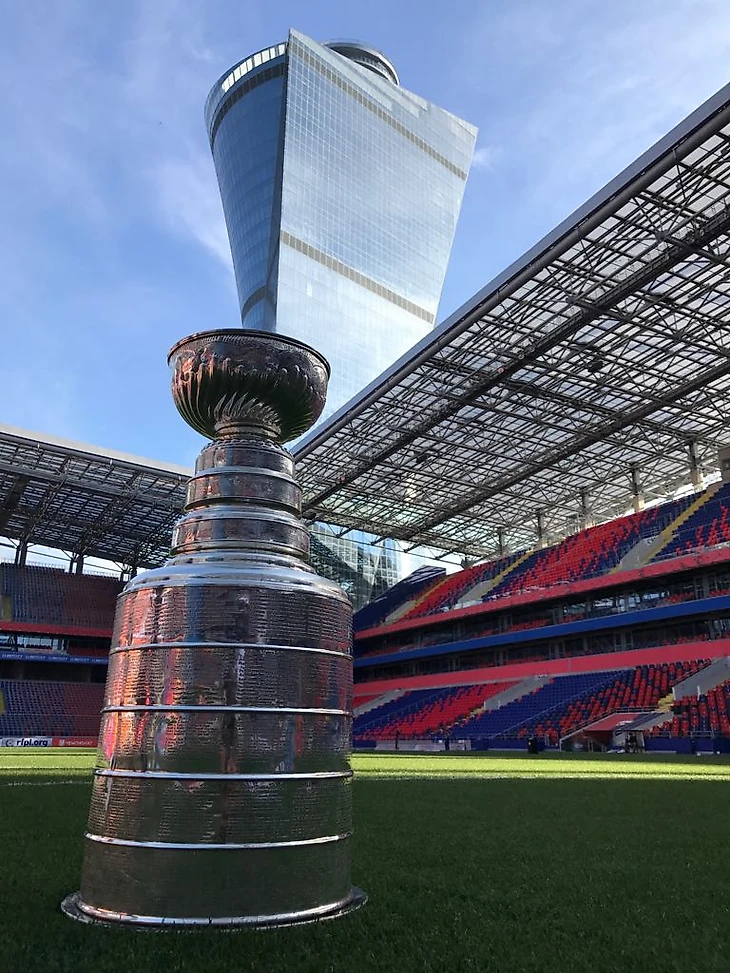 Евгений Малкин и Сергей Гончар привезли Кубок Стэнли в Москву, в музей хоккея. Но затем нападающий повез его на обозрение на домашний стадион футбольного ЦСКА.