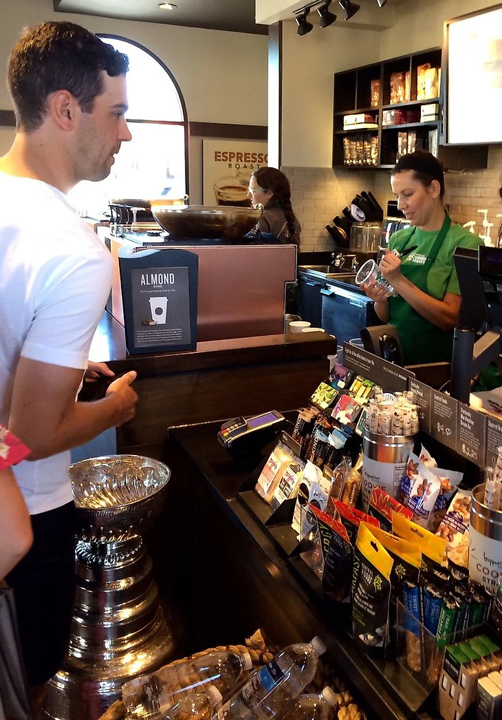 А затем пытался выбить скидку как обладатель Кубка Стэнли в местной кофейне: