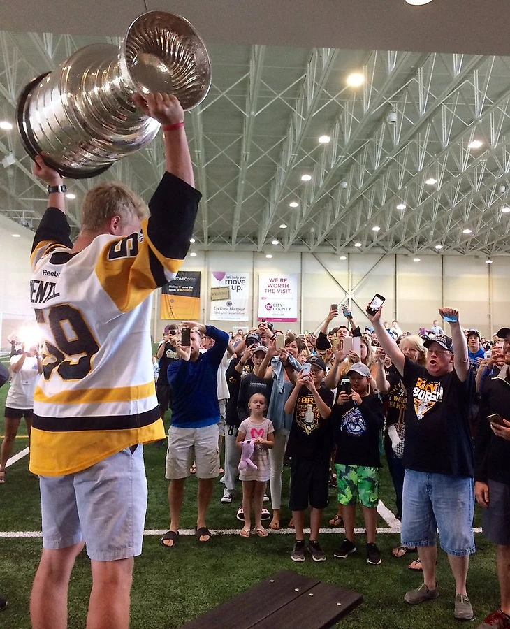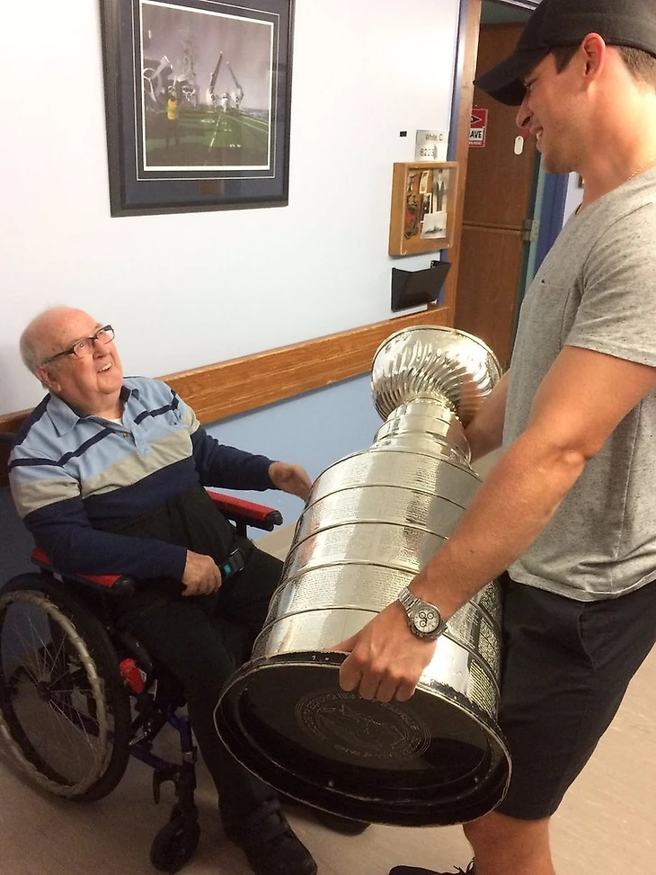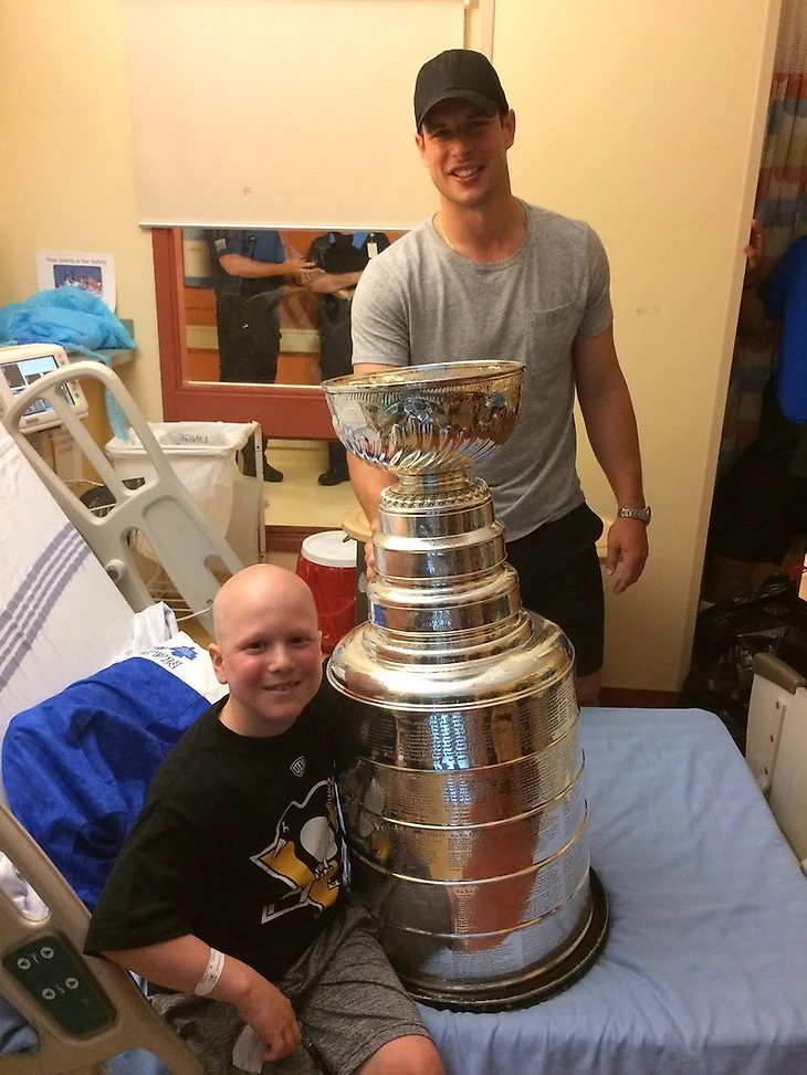 Капитану «Питтсбурга» Сидни Кросби Кубок Стэнли достался прямо перед днем рождения. Такой подарок он сначала разделил с пациентами детской больницы в Галифаксе.