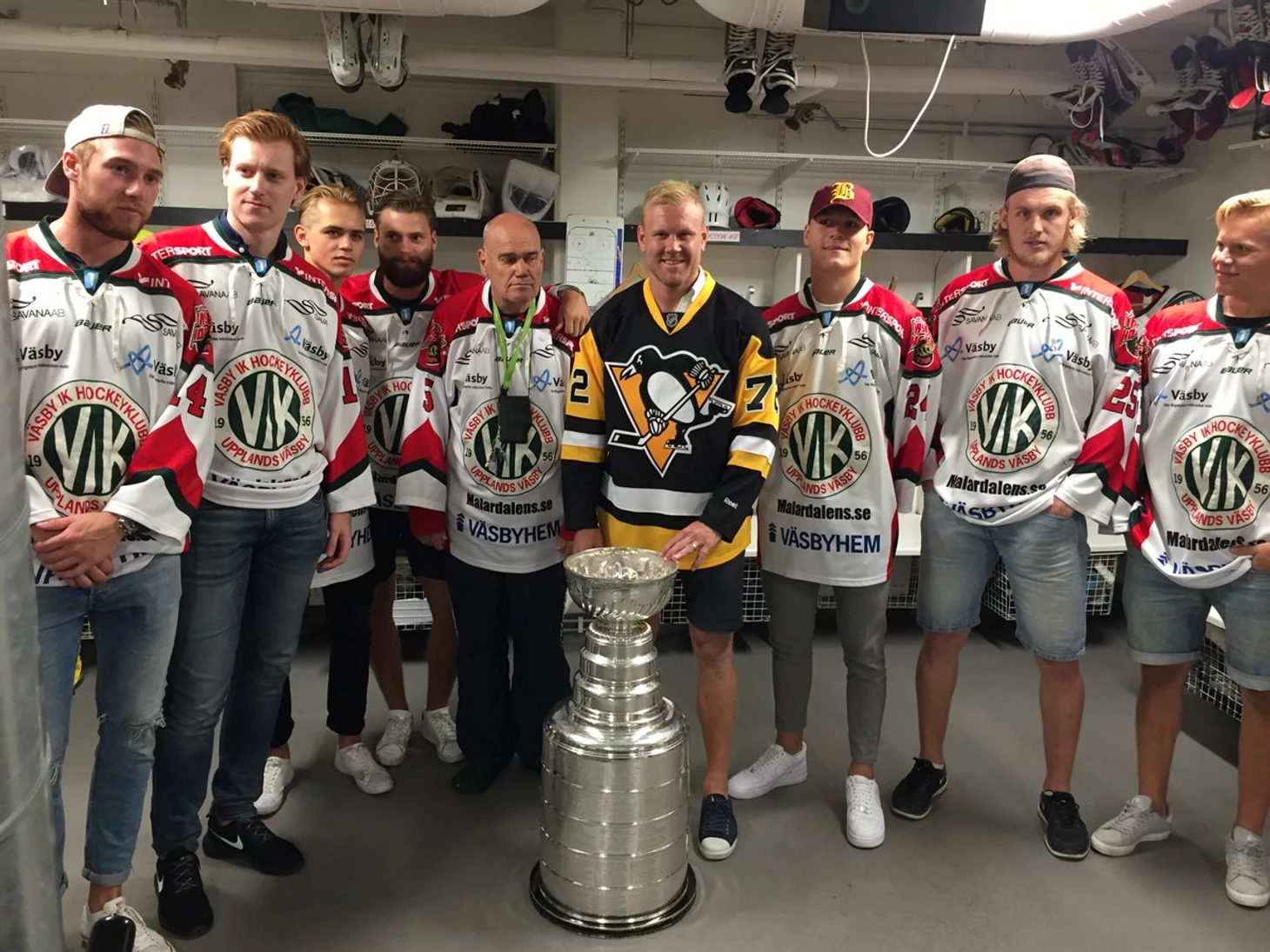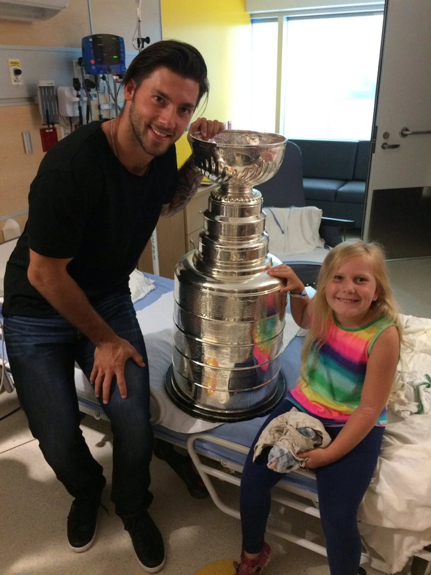 Уже через три дня после чемпионского парада «Питтсбурга» трофей приехал в гости к шестилетней Даррен, которая борется с лейкемией.