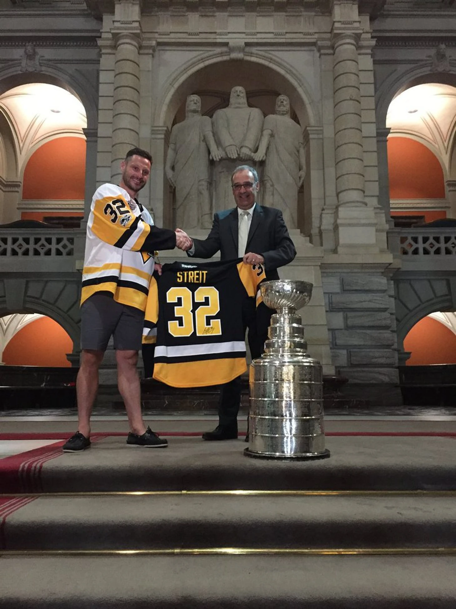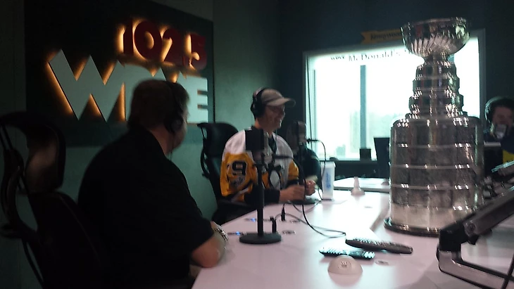 Еще один менеджер «Пингвинс» по экипировке, главный – Дана Хайнц – сделал Кубок Стэнли гостем эфира на любимой радиостанции.