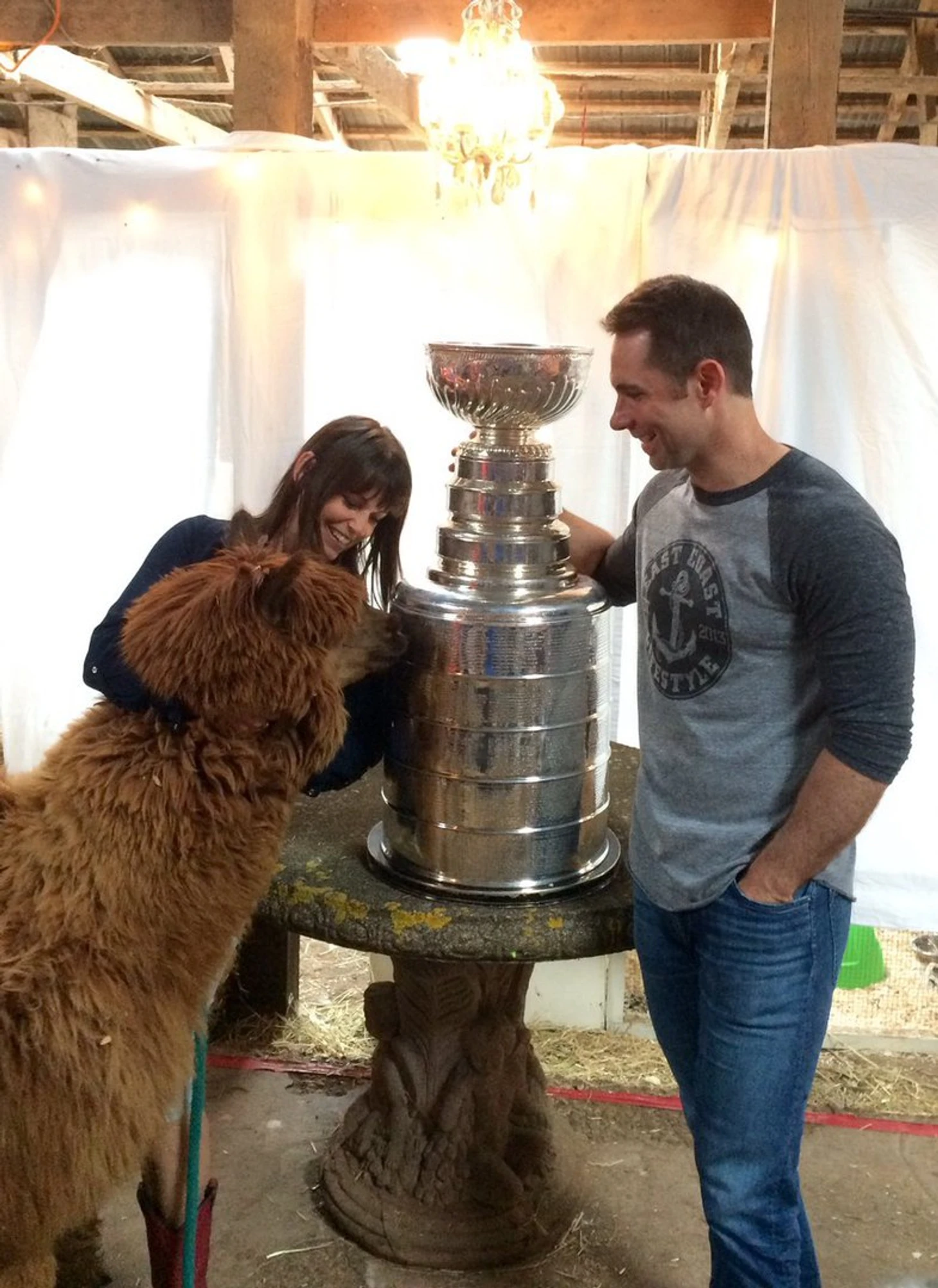 Затем произошла самая странная встреча Кубка Стэнли – с альпакой (домашнее парнокопытное животное, разводится для получения шерсти).