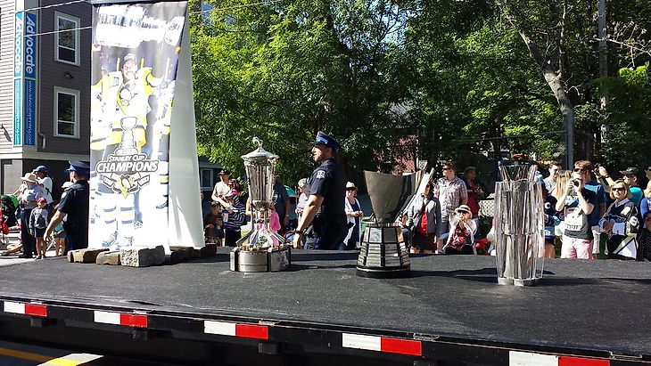 Ассистент генменеджера «Пингвингс» Билл Герин нашел для трофея отличную повозку. После такой прогулки он, естественно, напоил кубок.