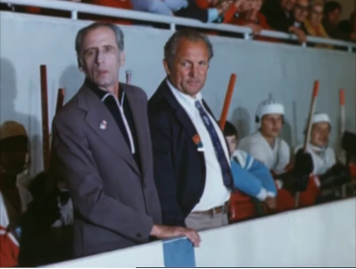 Внешний вид Бориса Васильева говорит о том, что он точно не учитель физкультуры из соседней школы: загар, солидный костюм, а во время хоккейного матча на его пиджаке мы видим значок тренера Спартакиады народов СССР. Просмотр выглядит максимально странно: Васильев просто смотрит на строй учеников в спортзале.