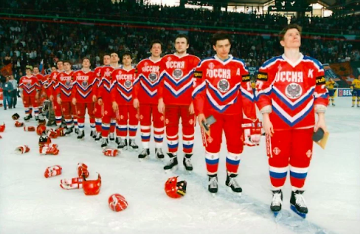 Начало 1990-х – безумно странное время. Пока осколки СССР учились жить самостоятельно, на важные соревнования от некогда советских территорий все равно отправлялась общая сборная – иногда не сильно отличавшаяся от тех, что ездили до распада. Называлась только по-разному. Например, с 1991-го по 1993-й на крупных хоккейных турнирах одну и ту же территорию представляли три бренда: СССР, Объединенная команда (неофициально – сборная СНГ) и Россия.