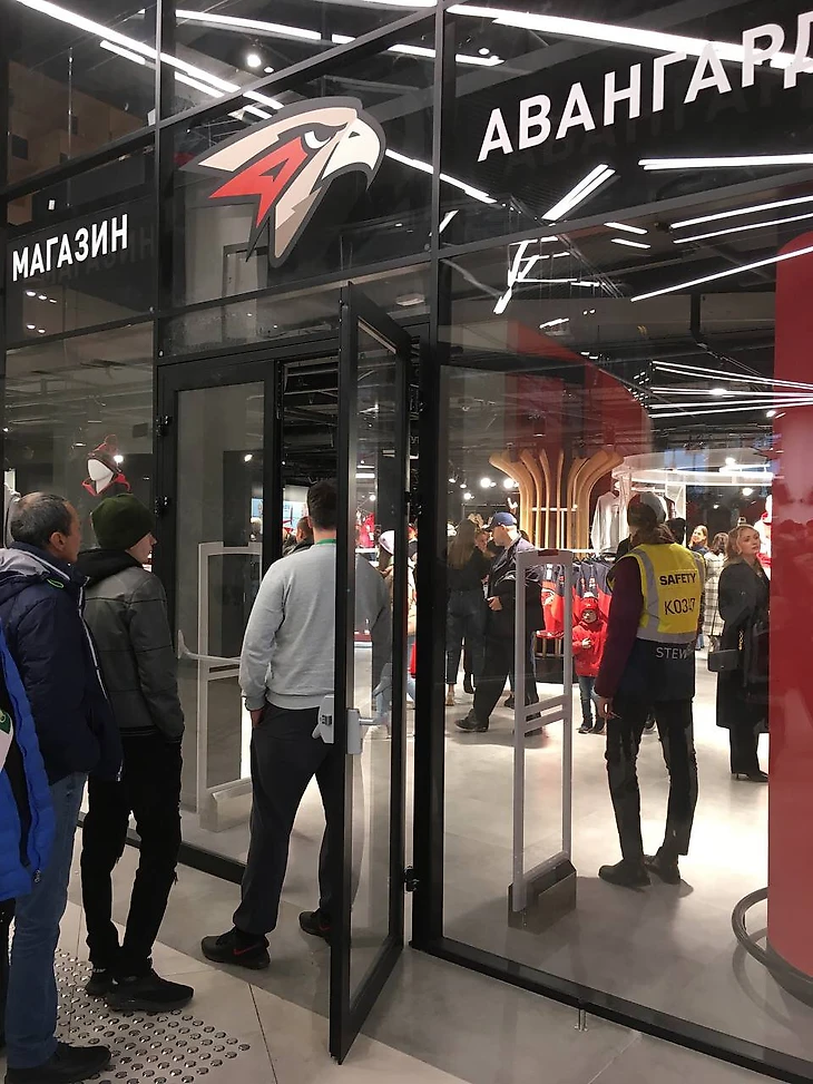 Но есть и другой выход – на каждом этаже по несколько мини-филиалов магазина с атрибутикой «Авангарда»: