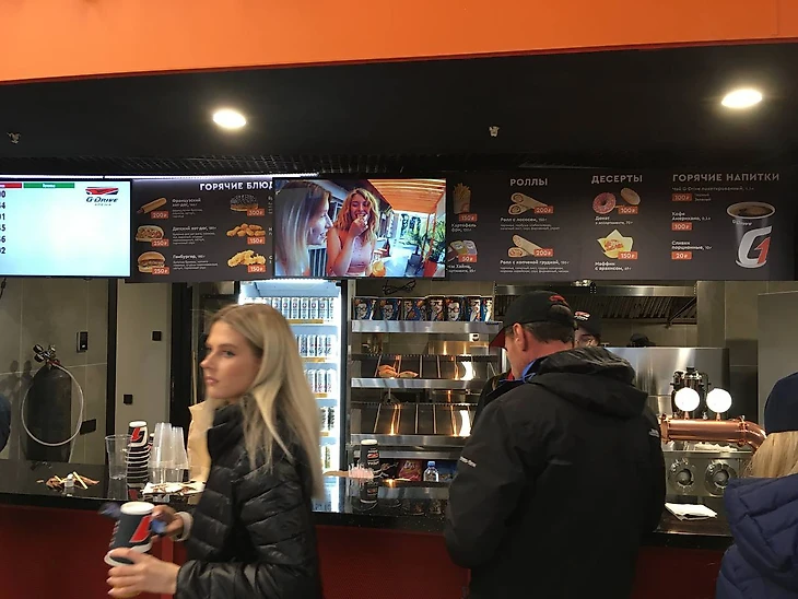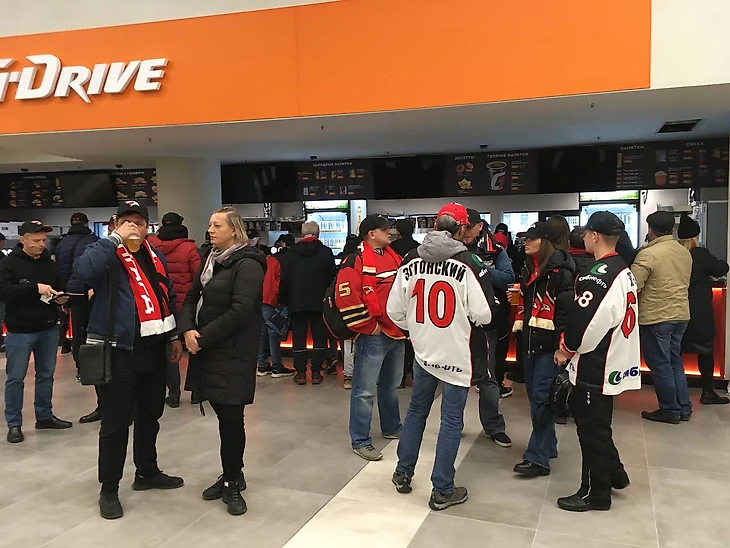 Здесь же болельщики могут перекусить – на каждом этаже по несколько фудкортов. Средний чек вполне приемлем: за 700 рублей можно съесть хот-дог, бургер и запить все это поллитровым стаканом пива. Да, в «G-Drive арене» продается пиво!