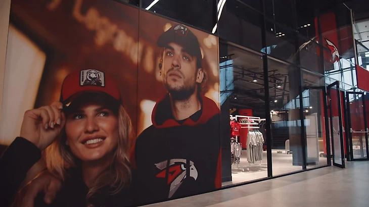 На первом этаже расположен огромный фан-шоп – на случай, если кто-то из болельщиков не успел заехать домой за атрибутикой. Правда, не все могут быть готовы к таким ценам: шарф (790 – 1100 рублей) могут позволить себе многие, а вот перед покупкой бейсболки уже появятся сомнения (1990). Джерси «Авангарда» в новом дизайне – 6500. Шапка на зиму – уже актуальный аксессуар для Омска – вполне доступна за 1100. Плюшевая игрушка ястреба-маскота – 2600. Ну, можно купить с условием, что это сейчас, но как бы на Новый год.
