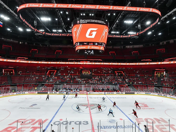 А так – «G-Drive Арена» в самом конце первого официального матча. Тоже играли молодежки – только «Авангарда» и «Сибири».