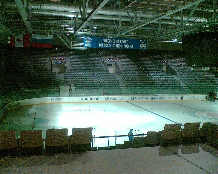 Содержимое двух вариантов арен тоже сложно сравнивать – без шансов для первенца. Так выглядела площадка «Арена Омск» после первого официального матча молодежек России и Канады (да, снимал на «Нокию») в августе 2007-го: