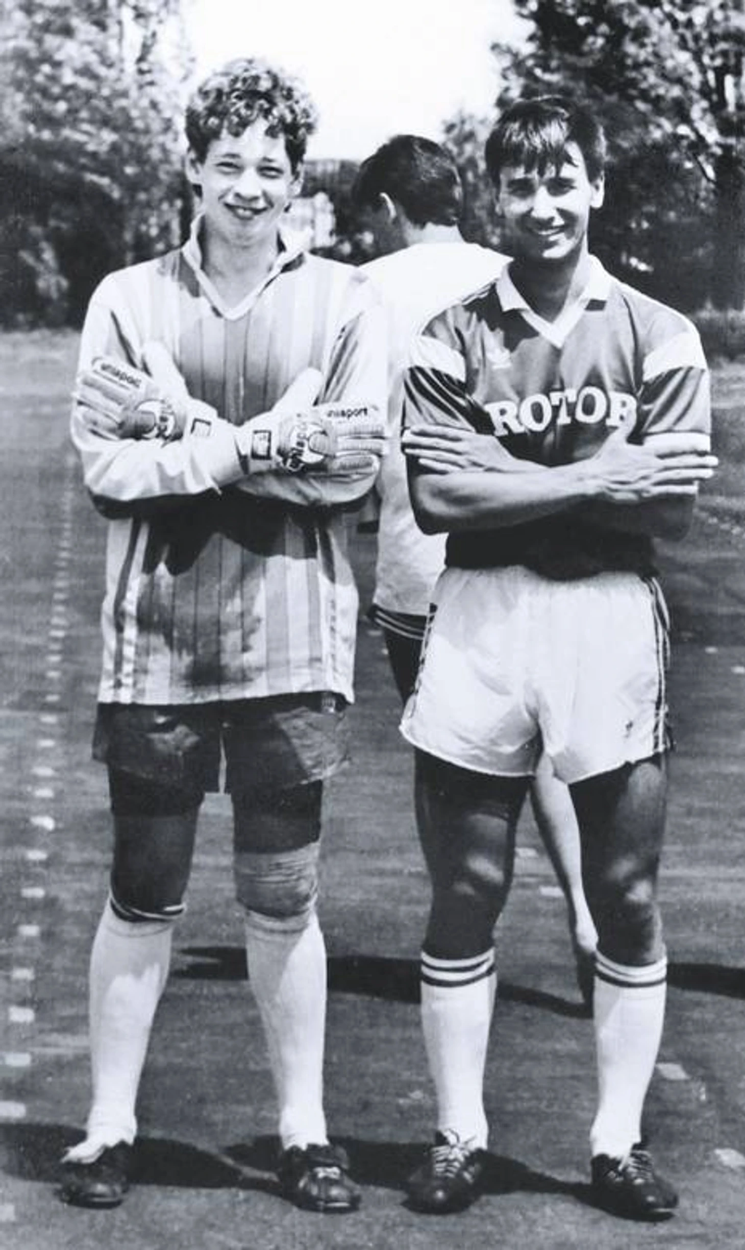 «Собирался на тренировку. Зашла соседка. У неё был домашний кот, она его случайно выпустила, он сразу же залез на тополь. Попросила за ним слазить. Я в жизни никогда на деревья не лазил, но не мог никому отказывать… Вот и полез. Потом мне сказали, что у тополя осенью очень хрупкие ветки. Хотя я был тогда худенький, не то, что сейчас. Ветка обломилась, схватился за верхнюю — тоже обломилась, и полетел на асфальт с высоты третьего этажа. Приземлился на колено, ударился лицом. Диагноз был такой: открытый многооскольчатый перелом левого надколенника, перелом носа, сотрясение мозга. Год провёл в больнице. Мне говорили, что нога вообще не будет гнуться. Я начал долго и мучительно разрабатывать сустав. Даже пытался вернуться в футбол, но не получилось — выше КФК вряд ли смог бы играть».
