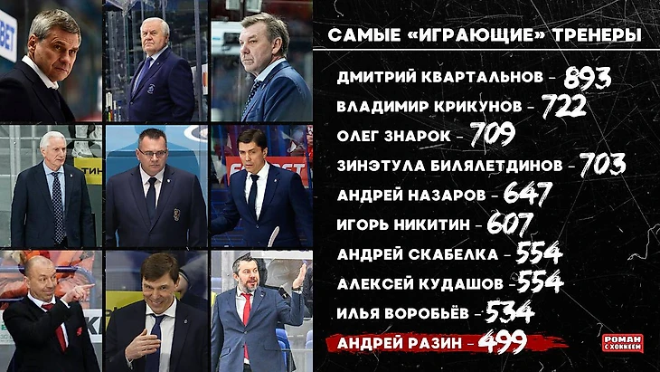 Список самых «играющих» тренеров в КХЛ на сегодняшний день