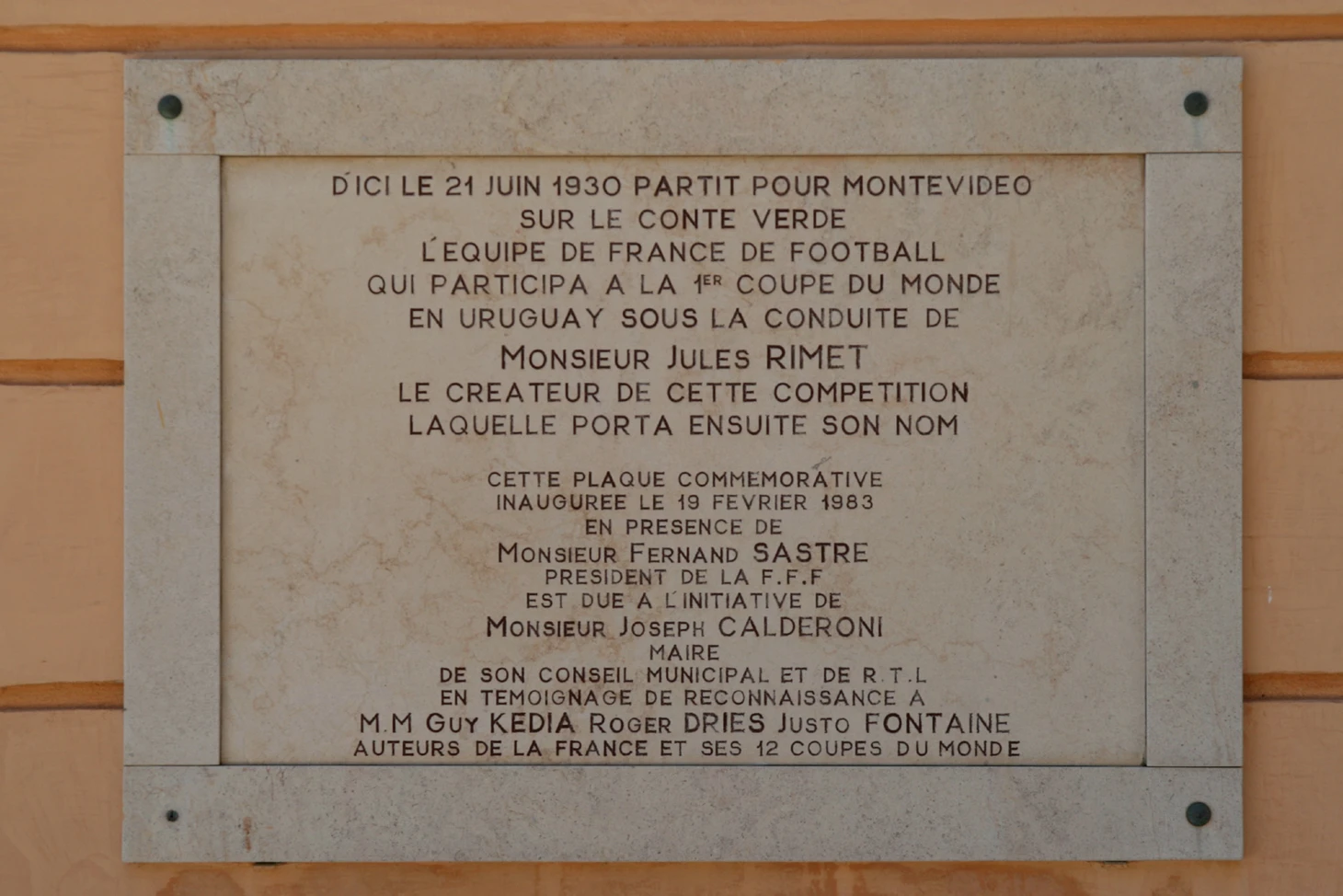 Мемориальная доска в порту "Вильфранш-сюр-Мер" с именами игроков сборной Франции