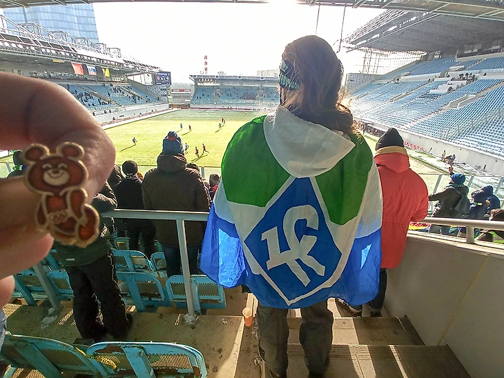 Во втором тайме я оказался в ложе прессы, по центру стадиона, и болельщиков Химок я все-таки услышал, хотя их и было почти в два раза меньше Крыльев Советов. Не знаю, возможно тот факт, что уже с 9 минуты их команда оказалась догоняющей, возможно мороз почти в -15 градусов так на них повлиял, может быть не хватало другого градуса, который обычно присутствует у фанатов на выездных матчах, и явно был заметен у Крылышек, но фанаты Химок были явно более вялые в поддержке, и заряжали не так часто и не так громко, как гости. Также морозы и тот факт, что Крылья Советов сейчас не входят в ТОП команд России, повлияли на общую посещаемость матча. На игре присутствовало по официальным данным всего 800 человек, но мне показалось, что было меньше. Вообще, оценивая 6 предыдущих матчей Химок в РПЛ со зрителями на Арене Химки, средняя посещаемость составила 2800 человек. При этом максимальное количество зрителей было на матчах с ЦСКА и Спартаком 4948 и 3881 соответственно. Конечно, здесь ещё и сказываются коронавирусные ограничения. Надеюсь, после их снятия, улучшения погоды и появления более высоких результатов команды зрителей будет больше.