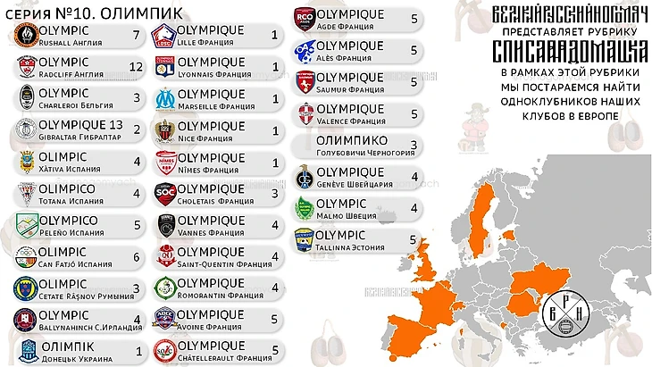 Серия 10 из цикла #Одноклубники сериала #СписаннаяДомашка представляет обзор (возможно неполный) всех европейских Олимпиков. Я сознательно не стал ставить эмблему российского Олимпика только потому, что сейчас сложно выбрать достойного....